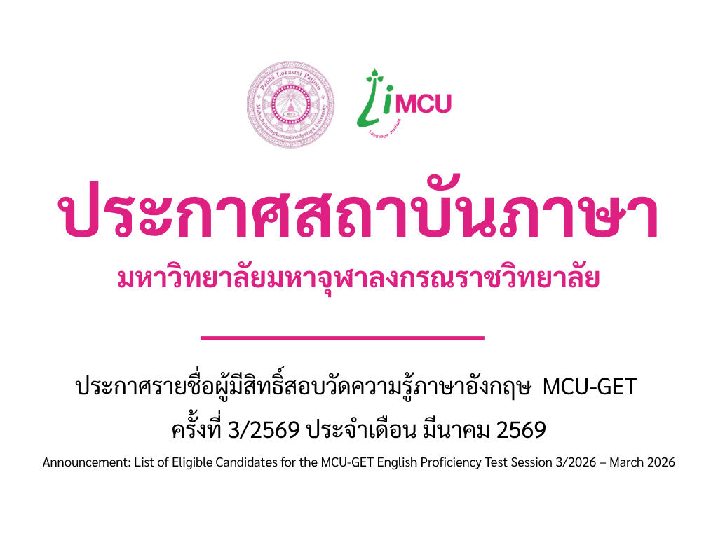 📢 ประกาศรายชื่อผู้มีสิทธิ์สอบวัดความรู้ภาษาอังกฤษ MCU-GET ครั้งที่ 3/2569 ประจำเดือนมีนาคม 2569 📝