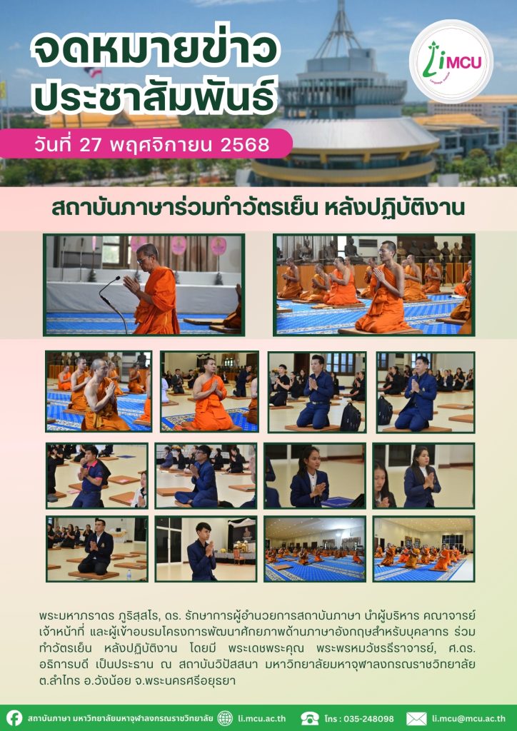 สถาบันภาษาร่วมทำวัตรเย็น หลังปฏิบัติงาน