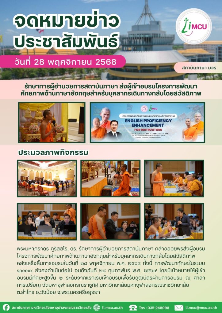 สถาบันภาษาจัดสอบ MCU-GET ครั้งที่ ๑๑