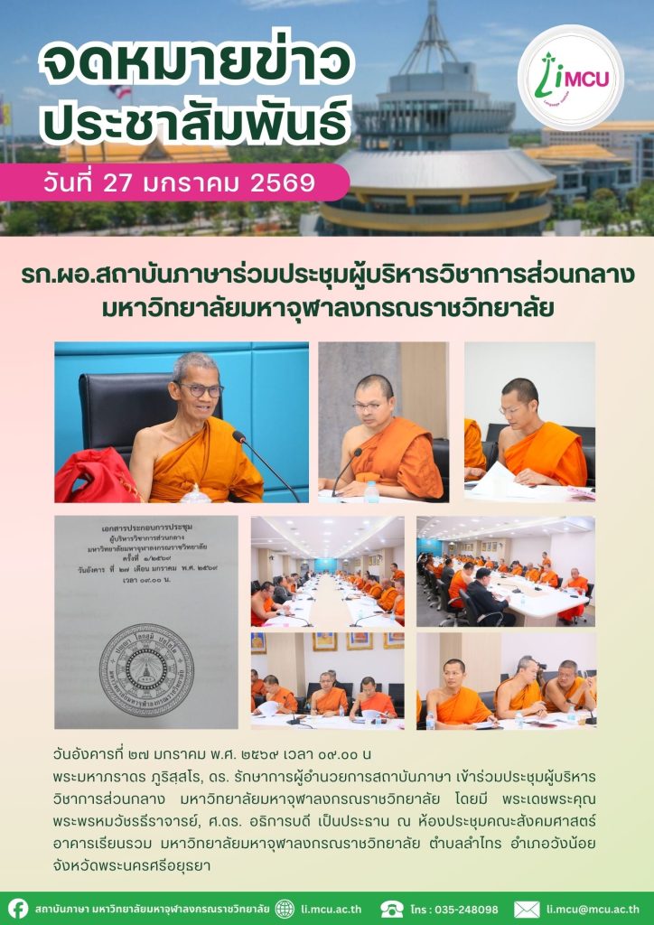 รก.ผอ.สถาบันภาษาร่วมประชุมผู้บริหารวิชาการส่วนกลาง มหาวิทยาลัยมหาจุฬาลงกรณราชวิทยาลัย