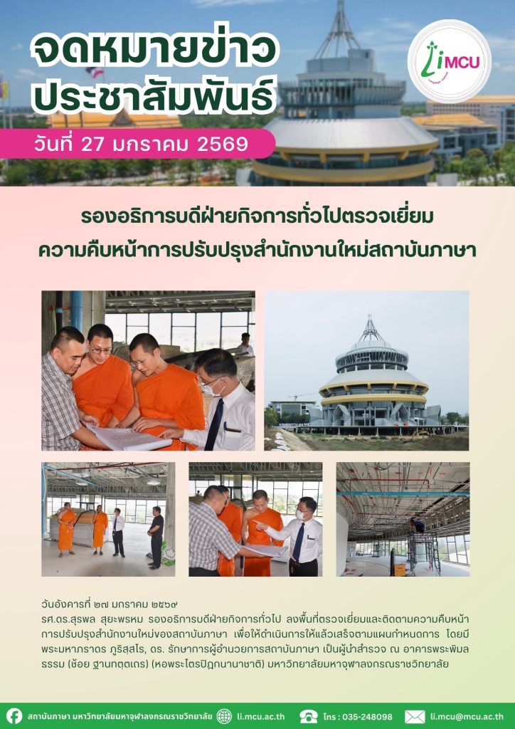 รองอธิการบดีฝ่ายกิจการทั่วไปตรวจเยี่ยมความคืบหน้าการปรับปรุงสำนักงานใหม่สถาบันภาษา