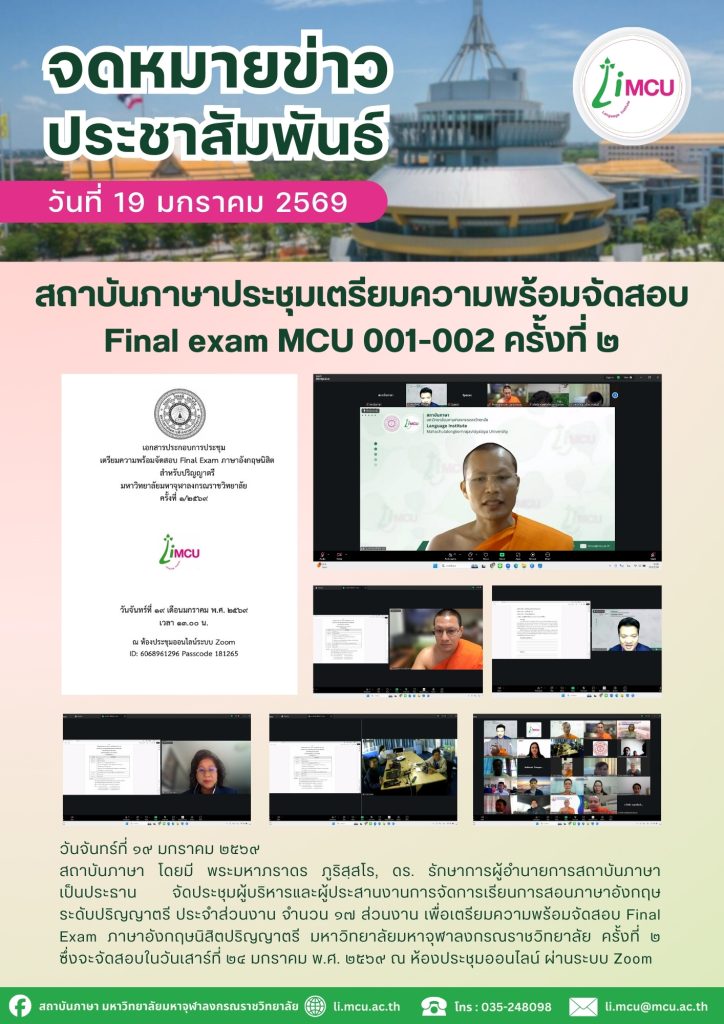 สถาบันภาษาประชุมเตรียมความพร้อมจัดสอบ Final exam MCU 001-002 ครั้งที่ ๒