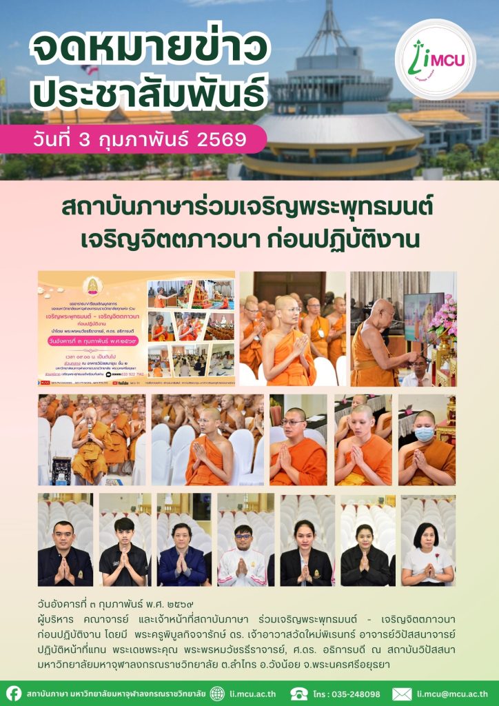 ประกาศรายชื่อนิสิตผู้มีสิทธิ์สอบปลายภาค หลักสูตรภาษาอังกฤษสำหรับนิสิตระดับปริญญาตรี MCU 002 ครั้งที่ 3 ประจำปีการศึกษา 2568