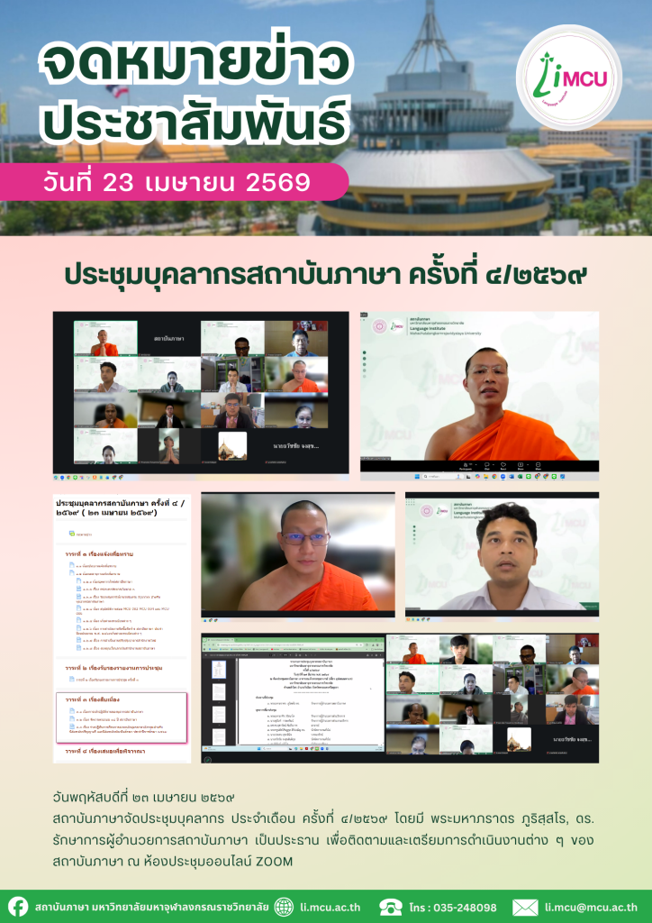 ประชุมบุคลากรสถาบันภาษา ครั้งที่ ๔/๒๕๖๙