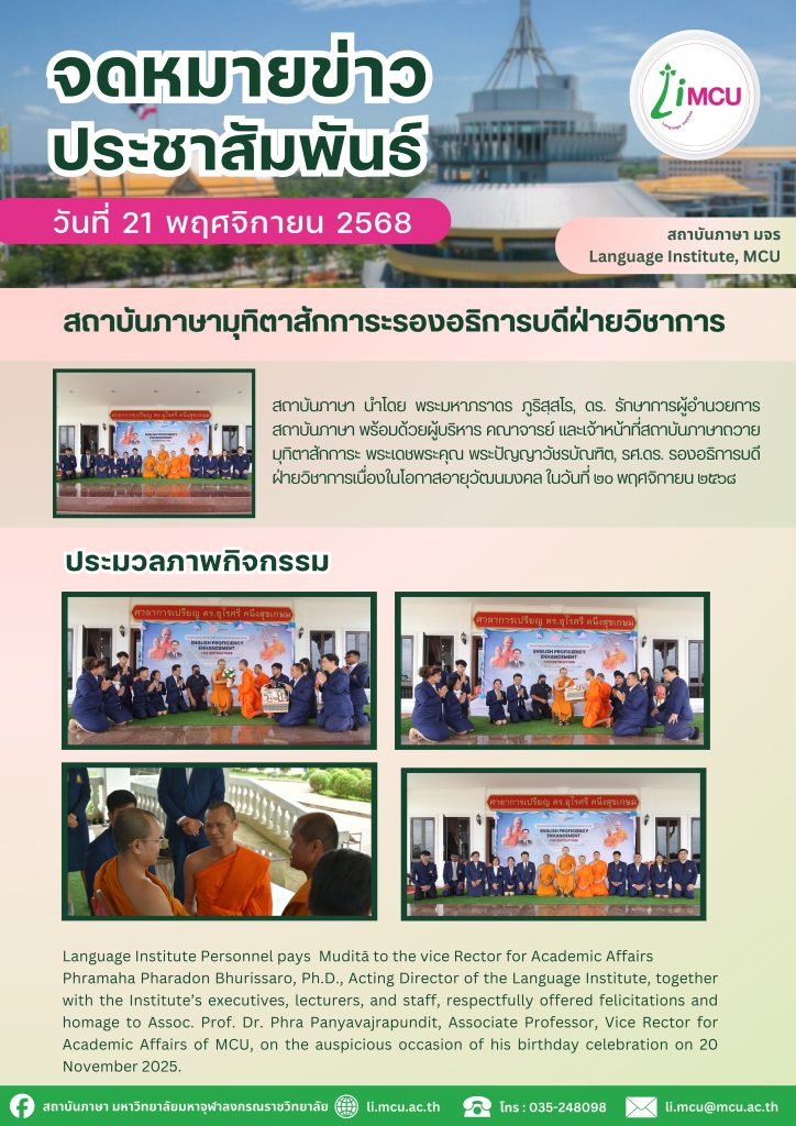 สถาบันภาษา มหาวิทยาลัยมหาจุฬาลงกรณราชวิทยาลัย ขอแสดงความยินดีกับ บัณฑิต มหาบัณฑิต และดุษฎีบัณฑิต ทุกท่าน