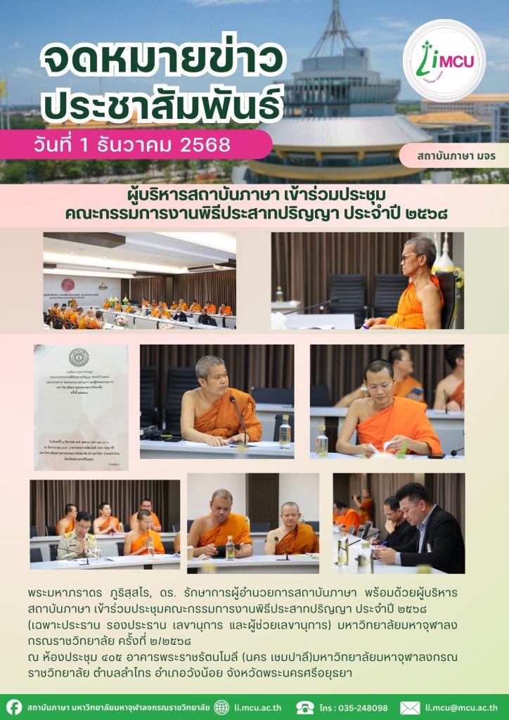ผู้บริหารสถาบันภาษา เข้าร่วมประชุมคณะกรรมการงานพิธีประสาทปริญญา ประจำปี ๒๕๖๘