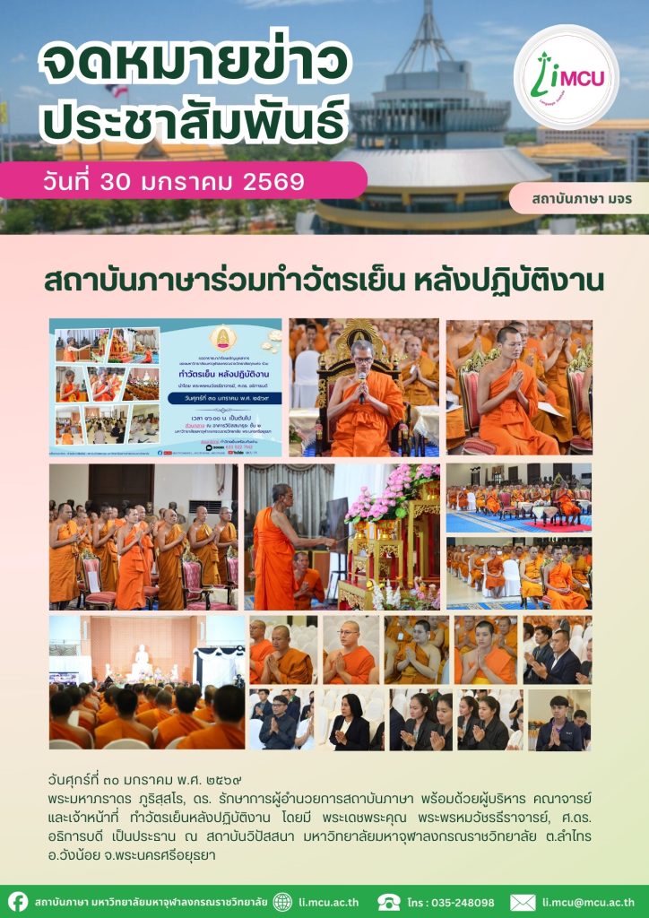 สถาบันภาษาร่วมทำวัตรเย็น หลังปฏิบัติงาน