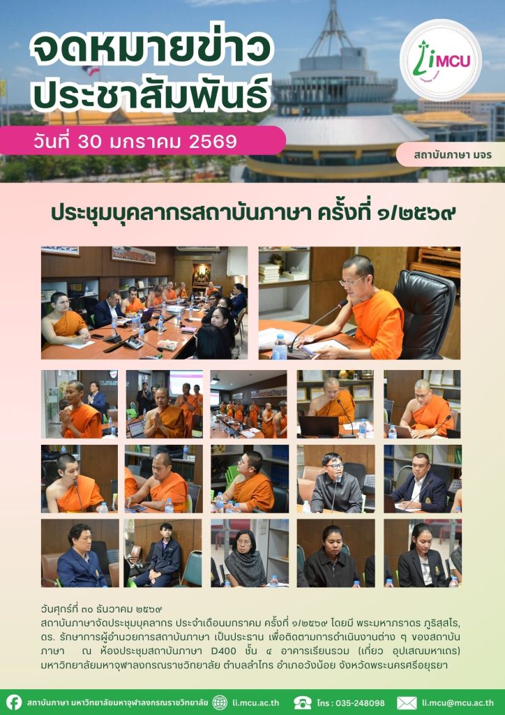 รก.ผอ.สถาบันภาษาร่วมประชุมผู้บริหารวิชาการส่วนกลาง มหาวิทยาลัยมหาจุฬาลงกรณราชวิทยาลัย