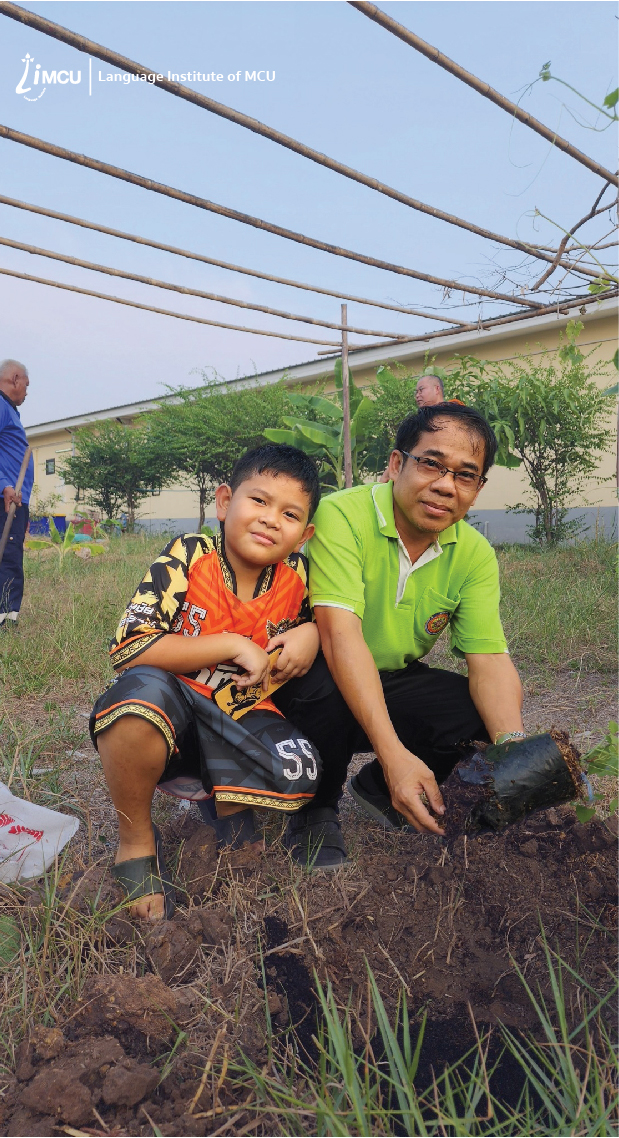 On Wednesday, March 13,2024, at 16:30, Phrakhru pariyatratanakhunpundit, Associate Professor, Ph.D., Director of Language Institute, along with administrators, lecturer, and staff of the Limcu, participated in tree planting and vegetable gardening activities at the back of the university’s cafeteria.