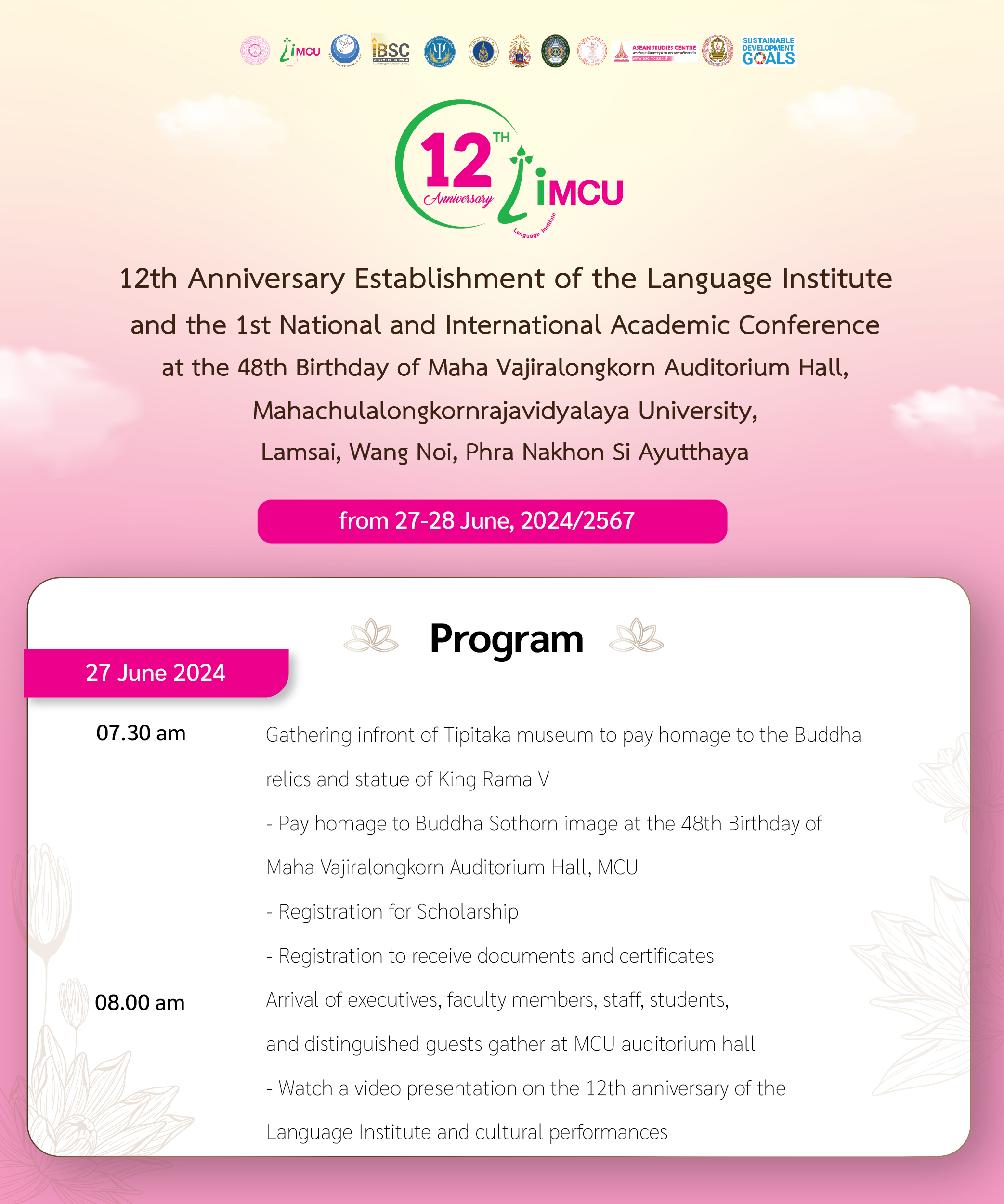 You are cordially invited to join the 12th Anniversary of the Establishment of the Language Institute of Mahachulalongkornrajavidyalaya University