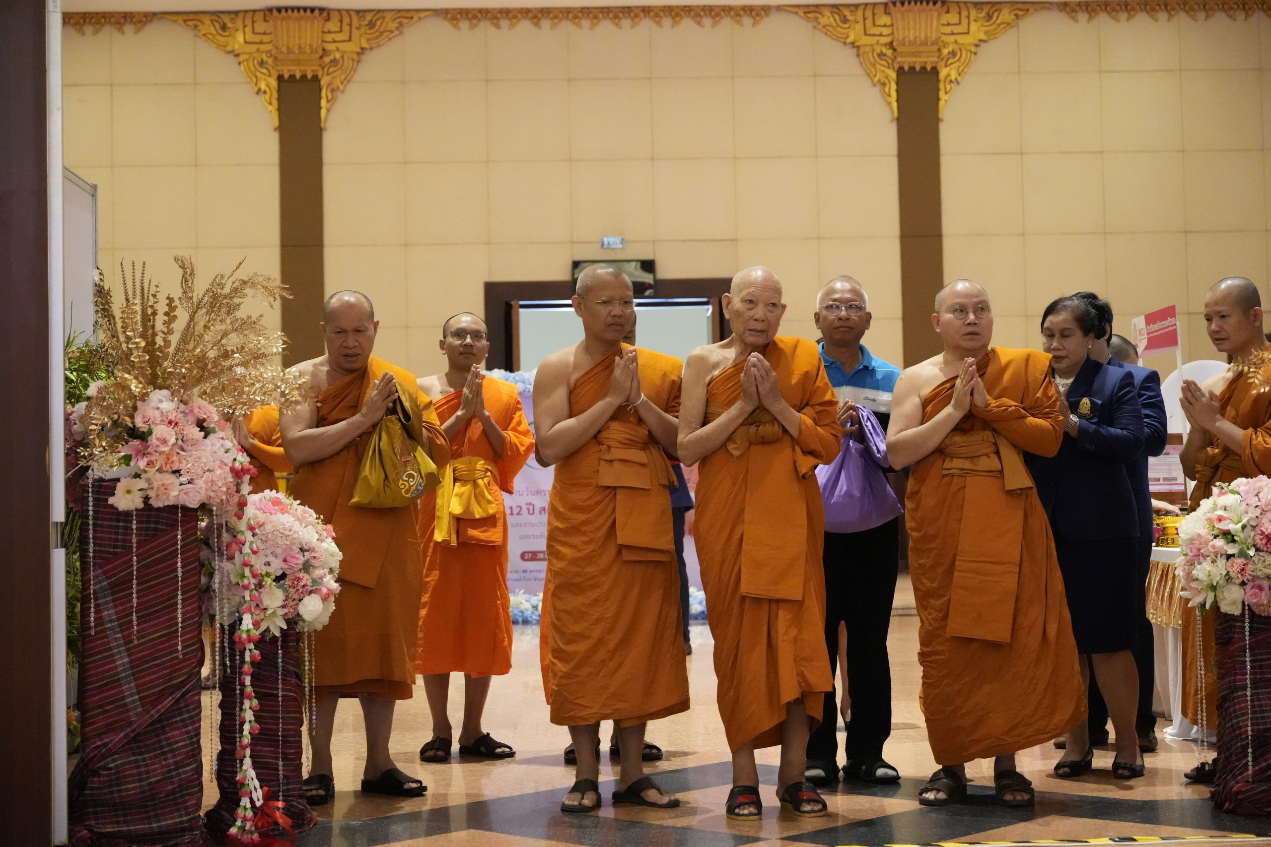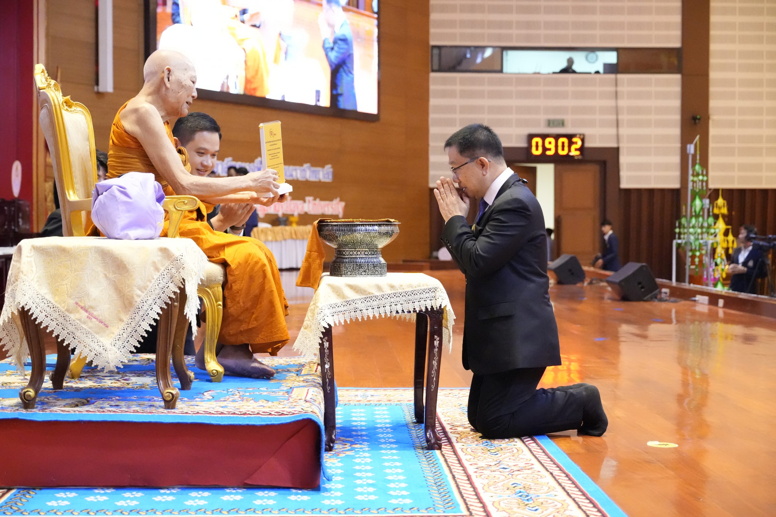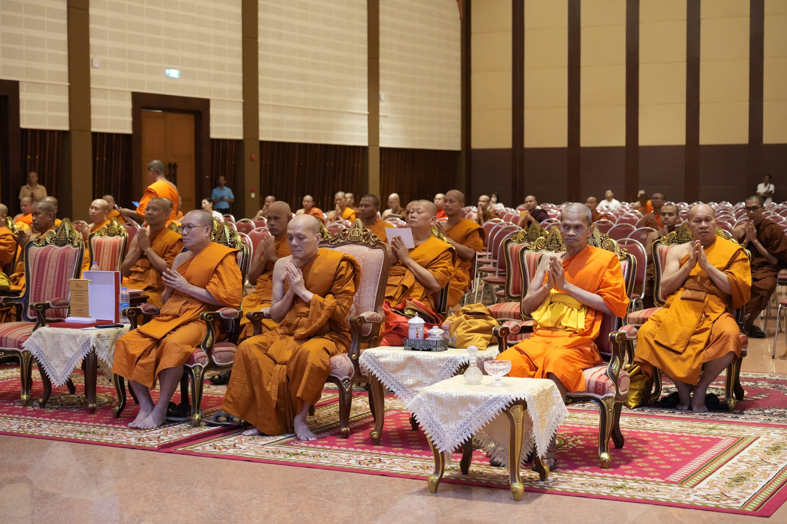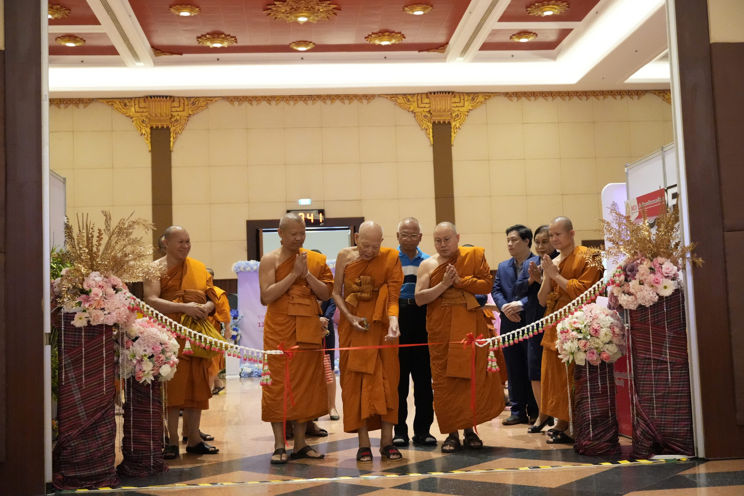 On Thursday, June 27, 2024, Phra Brahmavachirathibodi, the president of the university assembly, kindly presided over the opening of the exhibition and the 12th anniversary celebration of the Language Institute at 9:00 AM. Phra Brahmavachirathiracharn, Prof. Dr., the rector of MCU, awarded scholarships to second- to fourth-year undergraduate students from the Faculty of Buddhism, the Faculty of Education, IBSC, and student representatives from the Buddhist colleges. He also gave a keynote speech on ‘Religion, Language, and Culture Leading Society to Peace.’Afterwards, university executives, faculty members, staff of Mahachulalongkornrajavidyalaya University, and Buddhists together conducted the Matika-Bangsakul chanting ceremony. The monks received offerings and performed the Buddhist chanting ceremony at the 48th King’s Birthday Auditorium Hall (Mor Wor Kor).