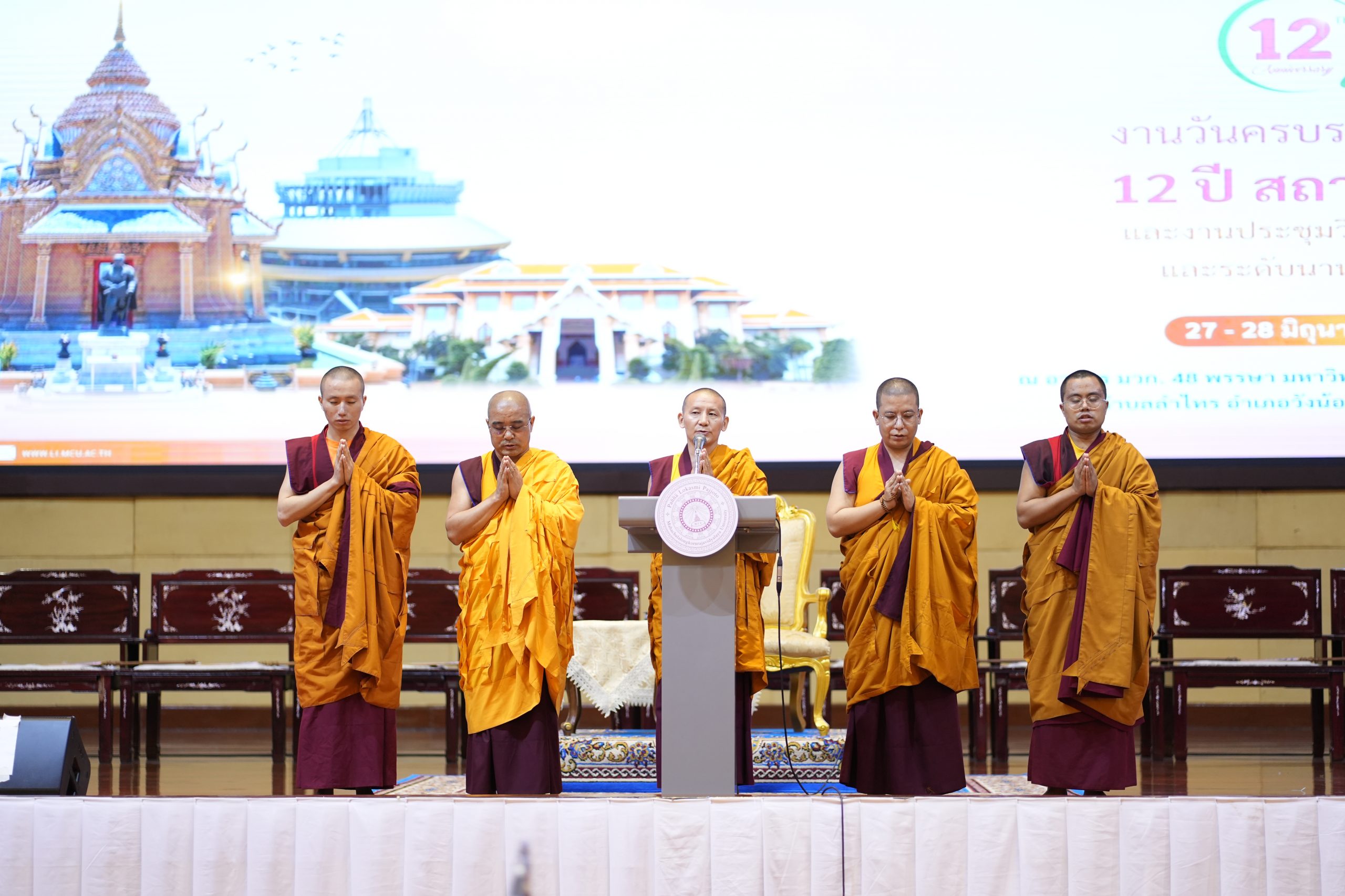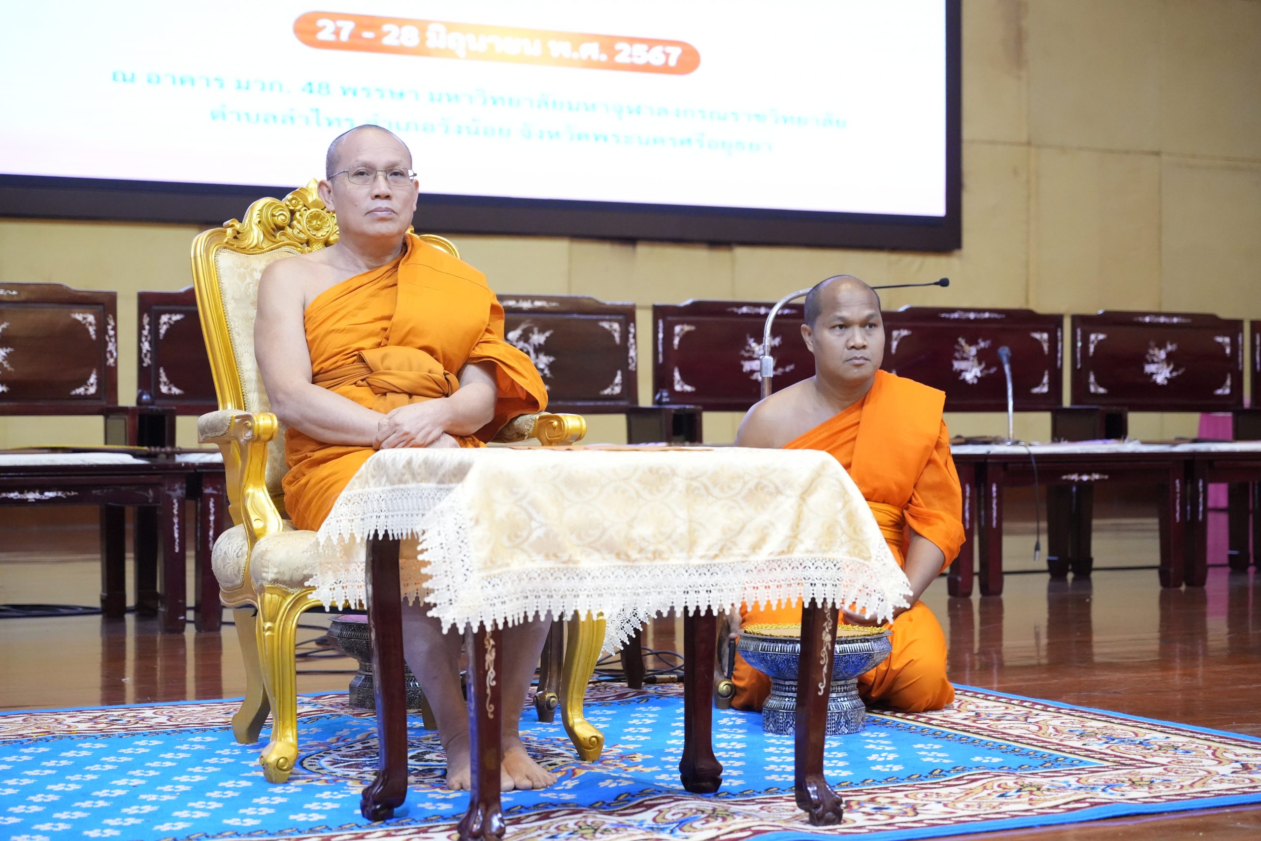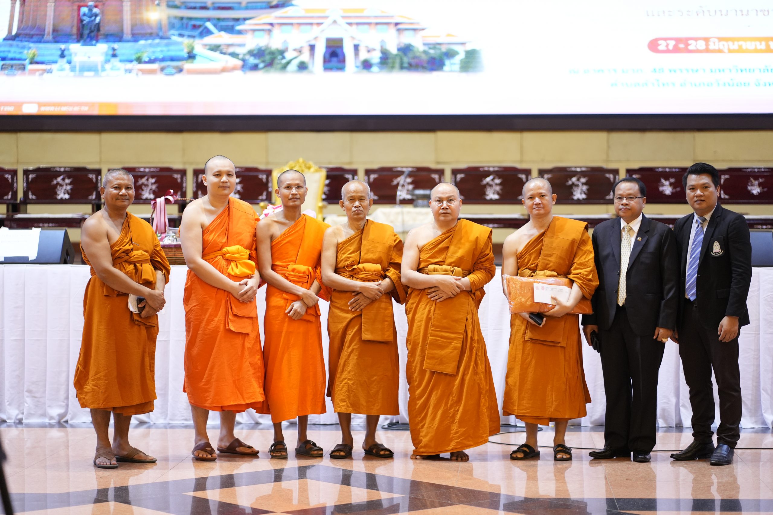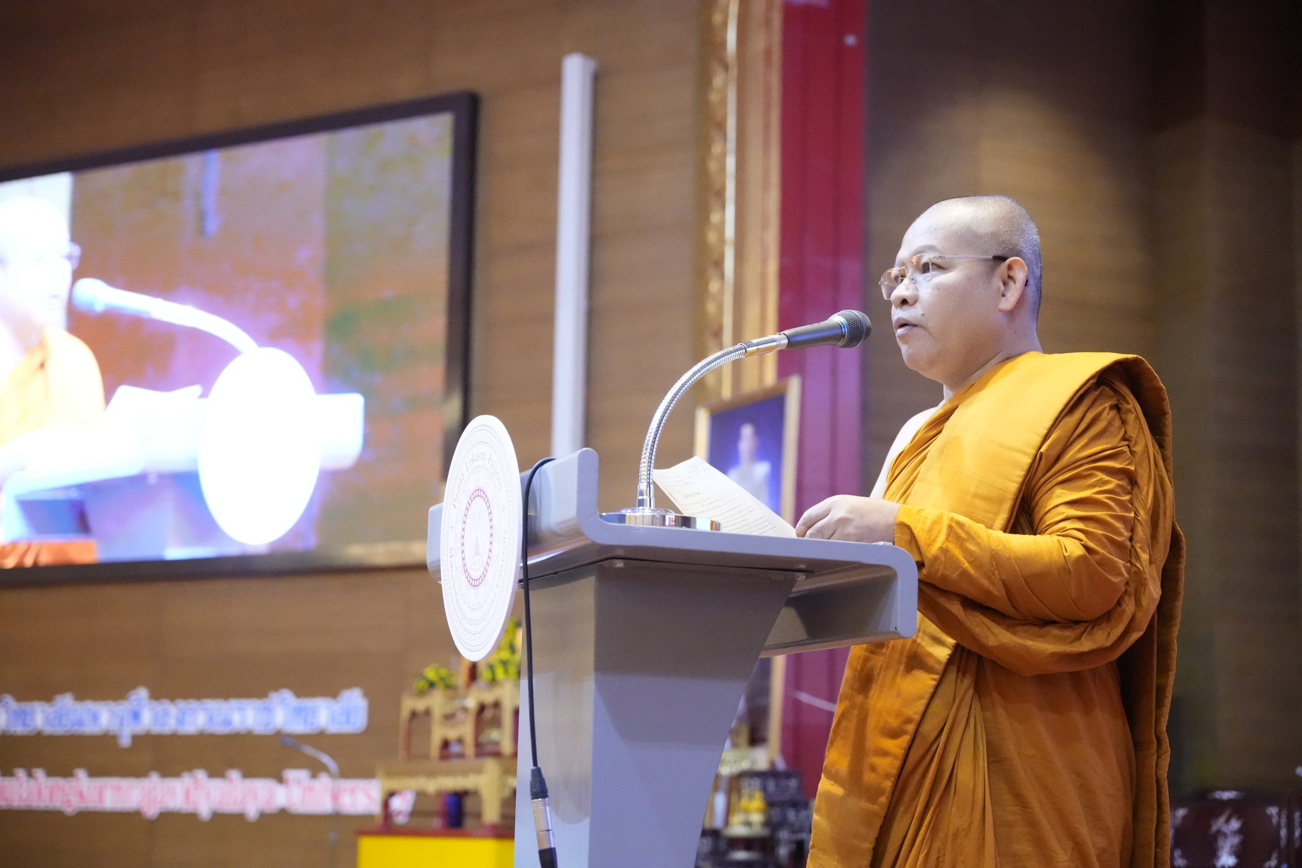 On Friday, June 28, 2024, university executives, faculty members, staff, students, and distinguished guests gathered at the 48th King’s Birthday Auditorium Hall (Mor Wor Kor) of Mahachulalongkornrajavidyalaya University at 10:00 AM. Phra Brahmapundit, Prof. Dr., vice president of the university assembly and president of the International Council for the Day of Vesak, arrived at the 48th King’s Birthday Auditorium Hall to view the exhibition and deliver a keynote speech on ‘Diversity in Religion, Language, and Culture for Sustainability.’ Afterwards, at 12:30 PM, there were presentations of academic works on ‘Diversity in Religion, Language, and Culture for Sustainability’ and the final round of the speech contest. At 3:30 PM, there was an award ceremony for the Supreme Patriarch’s winning plaque, certificates of honor, scholarships, and the closing ceremony.