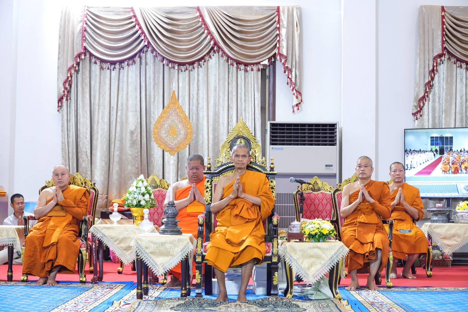 On Saturday, September 28, 2024, at 10:00 AM, Phra Khru Pariyati Rattankhun Bandit, Ph.D., Director of the Language Institute at Mahachulalongkornrajavidyalaya University, led the executives, faculty members, and staff in the ceremony. They presented the ceremonial water and royal Thai attire and paid respects to Phra Phromwatcharathera, Prof. Dr. Somjit Sammapanyo, the university’s president and deputy abbot of Region 5. The event took place at the Vipassana Building of Somdet Phutthacharya (Ajahn Asap Maha Thera) at Mahachulalongkornrajavidyalaya University, Lam Tai Subdistrict, Wang Noi District, Phra Nakhon Si Ayutthaya Province.