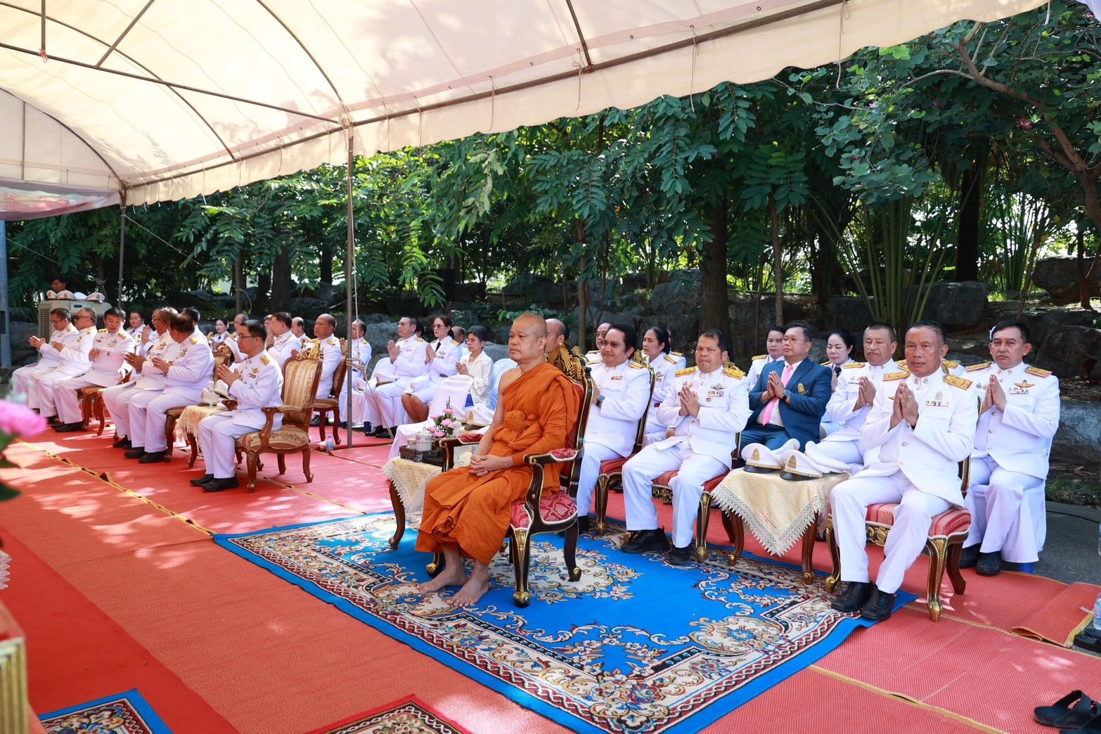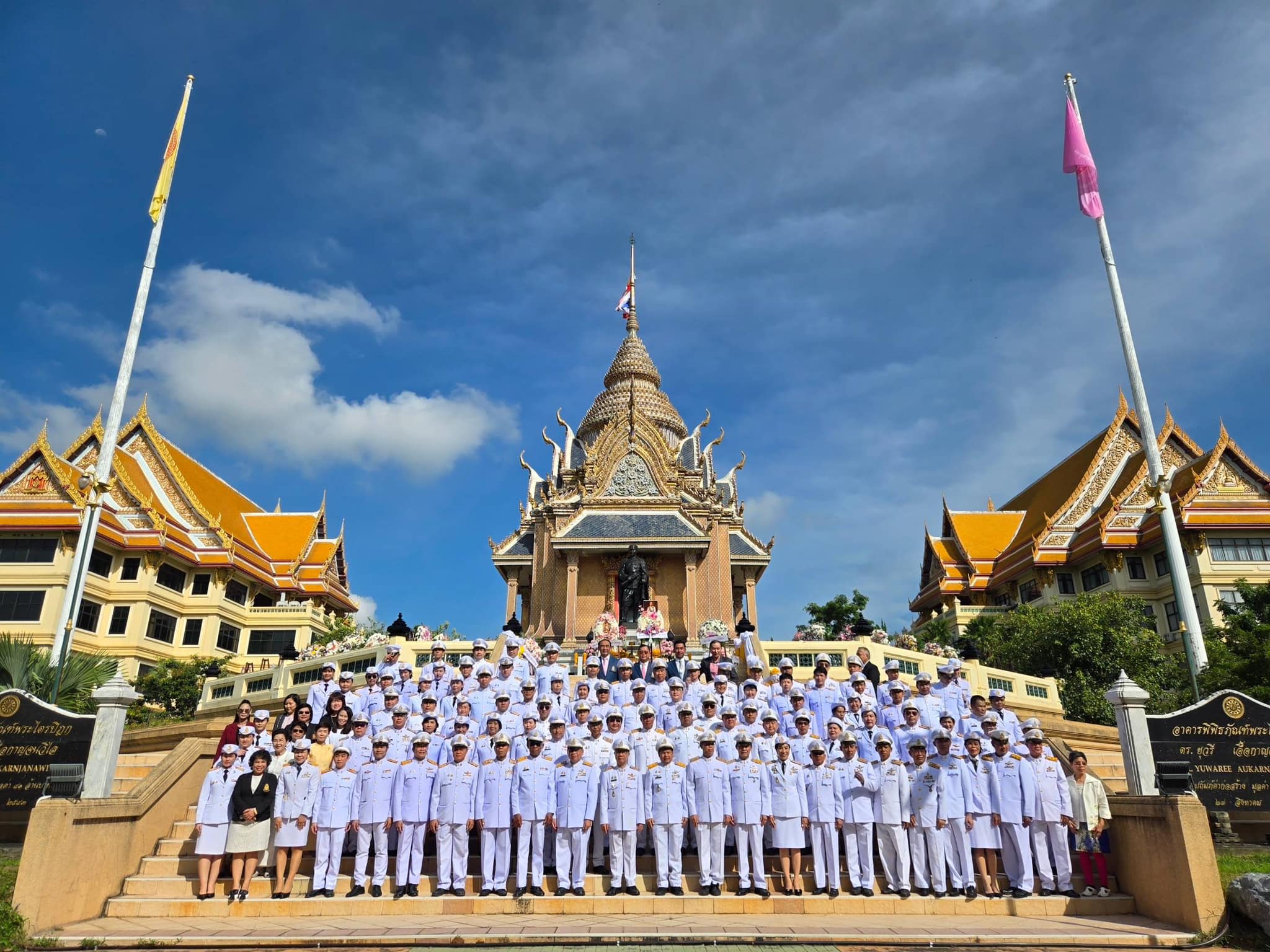ในการนี้ พระครูปริยัติรัตนคุณบัณฑิต รศ.ดร. ผู้อำนวยการสถาบันภาษา ได้มอบหมาย ดร.รุ่งโรจน์ ศิริพันธ์ ผู้อำนวยการส่วนวิชาการ นำบุคลากรสถาบันฝ่ายคฤหัสถ์เข้าร่วมพิธีในนามสถาบันภาษา มจร และร่วมวางพวงมาลา ณ มณฑลพิธีด้านหน้าอาคารพิพิธภัณฑ์พระไตรปิฎก มหาวิทยาลัยมหาจุฬาลงกรณราชวิทยาลัย