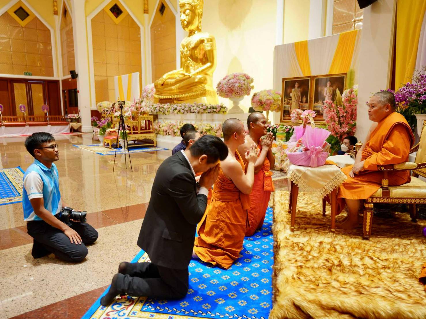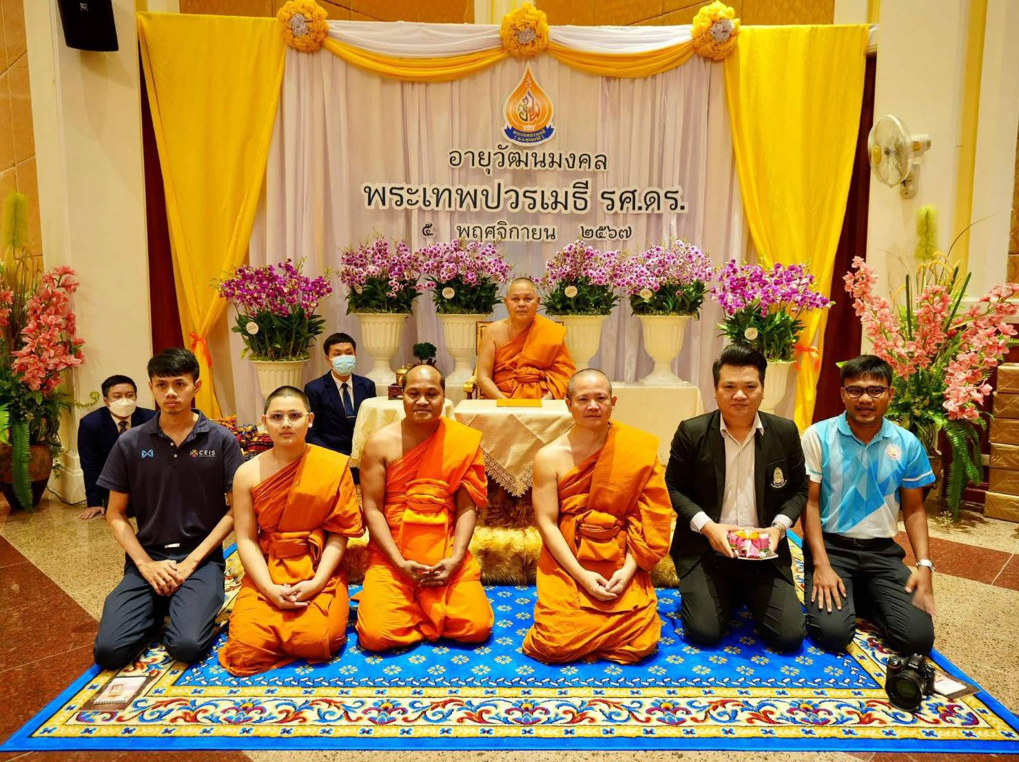 Date: November 5, 2024, at 09:30 AM Associate Professor Dr. Phrakhrupariyatratanakhunpundit, Director of the Institute of Language and Acting Director of the Office of the Rector, assigned Phra Khru Palad Wichitakoon Siripanyo, Ph.D., Deputy Director of the Institute of Language, and Phra Maha Santi Theeraphatto, Ph.D., Director of the Administrative Division, along with the administrative staff of the Institute of Language, to present the Muthita Sakkara (congratulations and respect) to Phra Thep Pavaravimethi, Associate Professor, Ph.D., Vice President for Administration of Mahachulalongkornrajavidyalaya University and Acting Abbot of Wat Mahachulalongkorn Raju Tith, Ayutthaya, on the occasion of his auspicious birthday celebration at the Uraisri Khunungsuk Kasem Hall, Wat Mahachulalongkorn Raju Tith.