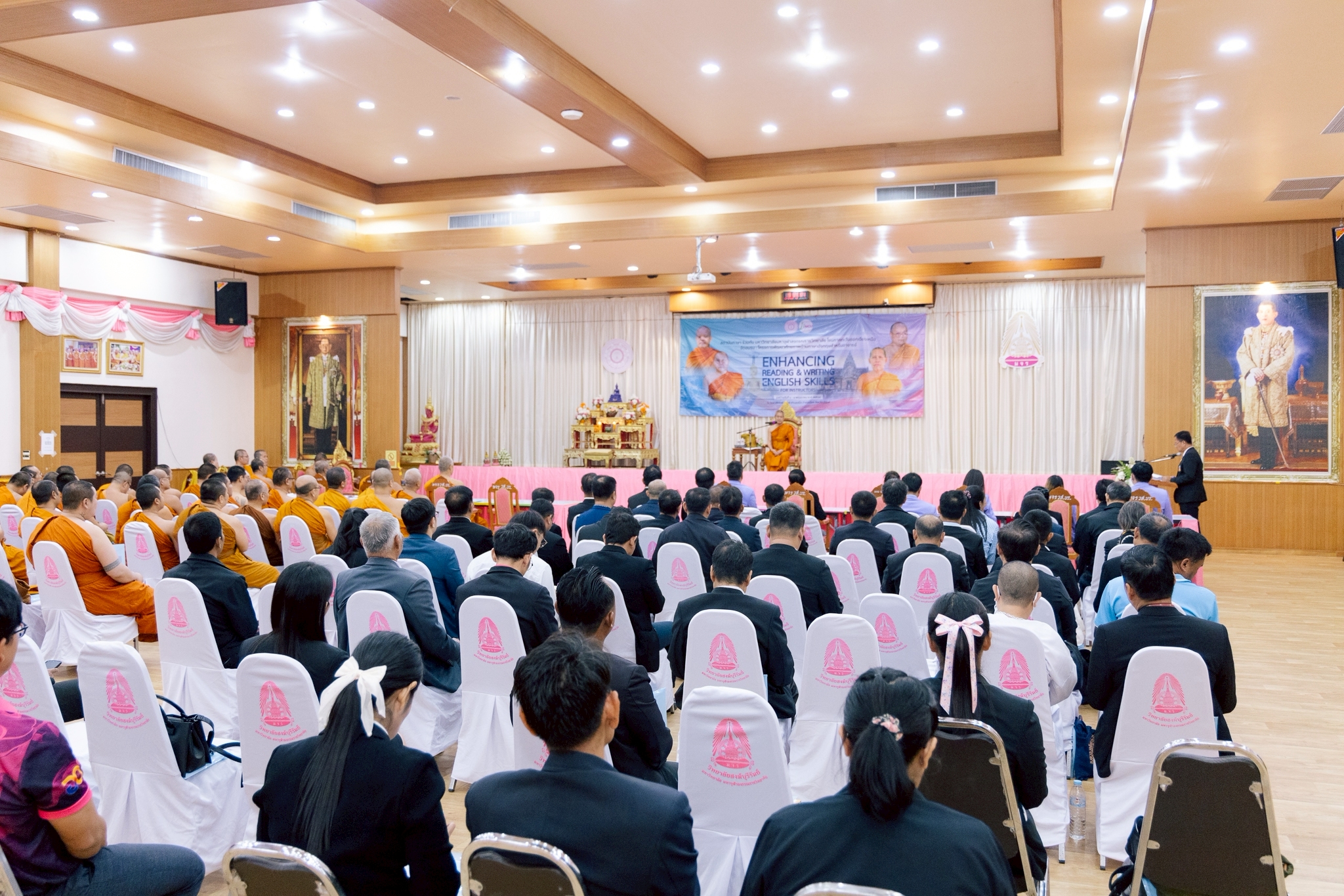 วันที่ ๖ พฤษภาคม ๒๕๖๘ พระเดชพระคุณ พระเทพวัชรสารบัณฑิต รศ.ดร. รองอธิการบดีฝ่ายวางแผนและพัฒนา เป็นประธานเปิดโครงการพัฒนาศักยภาพด้านภาษาอังกฤษสำหรับคณาจารย์ มจร โซนภาคตะวันออกเฉียงเหนือ ณ วิทยาลัยสงฆ์บุรีรัมย์ โดยมีอาจารย์ประจำหลักสูตรปริญญาตรี จากส่วนงานจัดการศึกษา ๑๔ ส่วนงาน ทั้งสิ้น ๑๒๐ รูป/คน เข้าร่วมอบรม การอบรมนี้ เน้นเพิ่มพูนทักษะภาษาอังกฤษด้านการอ่านและการเขียน หลักสูตร ๒๐ ชั่วโมง ระหว่างวันที ๖ – ๘ พฤษภาคม ๒๕๖๘