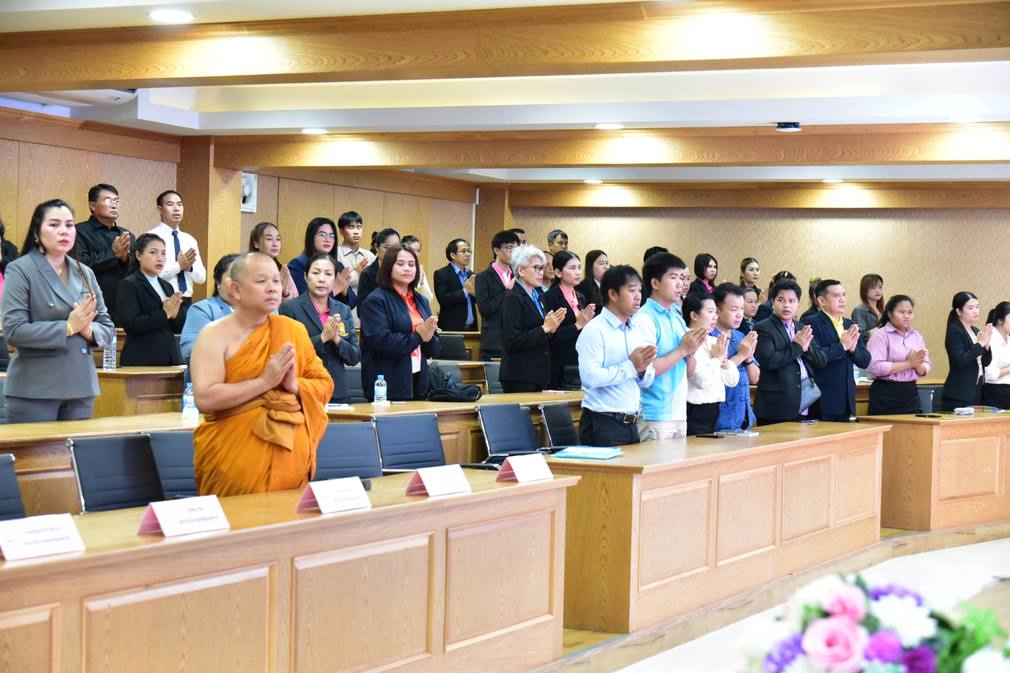 At 1:30 p.m., the closing ceremony was graciously presided over by Assoc. Prof. Dr. Phra Theowatcharasarapundit, Vice Rector for Planning and Policy, who presented certificates to the trainees and offered guidance on applying the knowledge gained for effective performance in their duties.