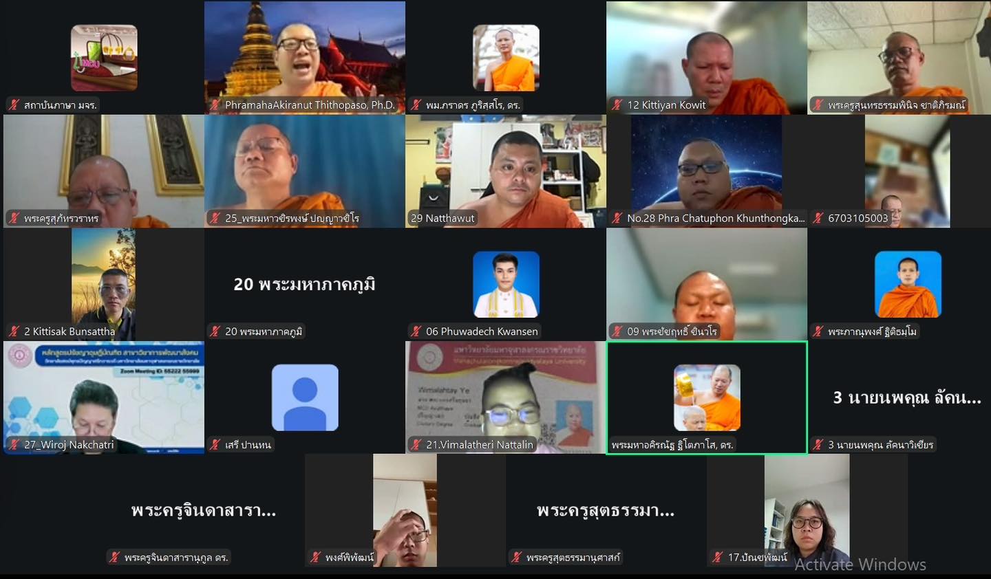 วันศุกร์ที่ ๑๔ พฤศจิกายน ๒๕๖๘ พระมหาภราดร ภูริสฺสโร, ดร. รักษาการผู้อำนายการสถาบันภาษา เข้าสังเกตการณ์พร้อมให้กำลังใจอาจารย์ผู้สอนและนิสิตในชั้นเรียนภาษาอังกฤษออนไลน์ (MCU 005) ของนิสิตระดับดุษฎีบัณฑิต พร้อมเมตตาให้กำลังใจแก่ผู้เรียน ห้องเรียนออนไลน์ สถาบันภาษา มหาจุฬาลงกรณราชวิทยาลัย