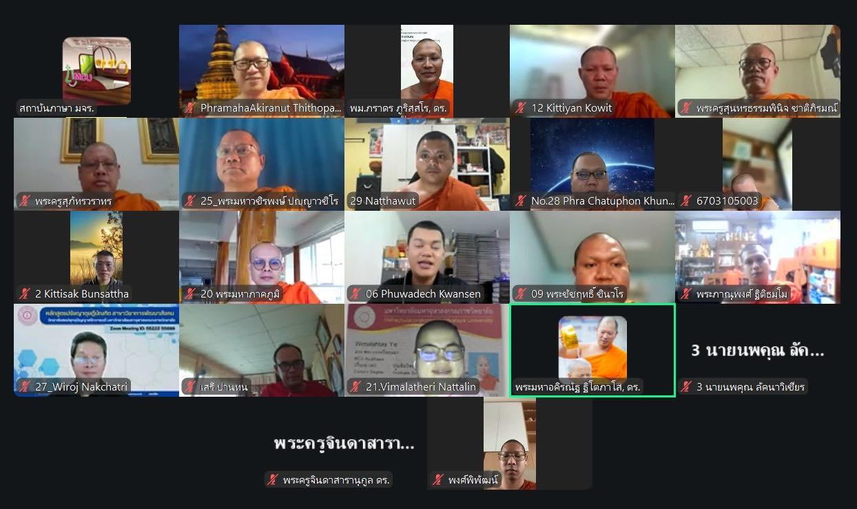 Friday, November 14, 2025 Phramaha Pharadorn Bhūrissaro, Dr., Acting Director of the Language Institute, observed the online English class (MCU 005) for Doctoral students and kindly offered encouragement to the class. Online Classroom, Language Institute, Mahachulalongkornrajavidyalaya University