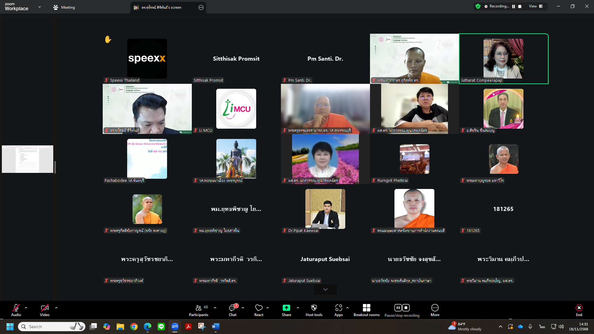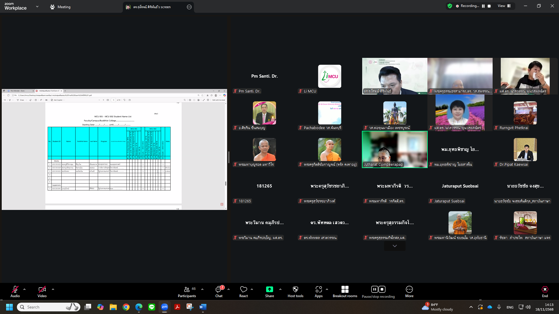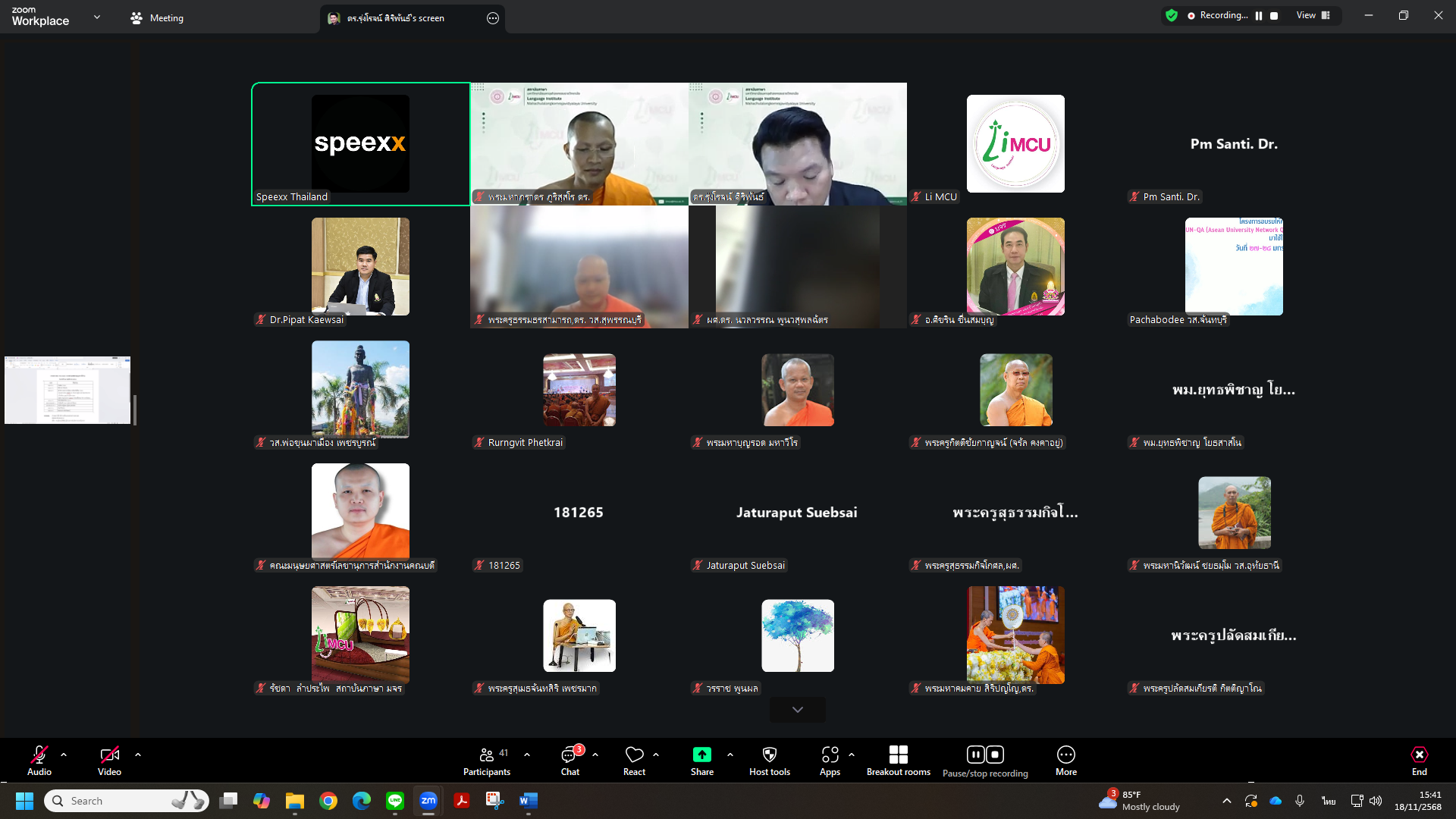 Tuesday, 18 November 2025, at 1:30 p.m. The Language Institute held a meeting with administrators and English undergraduate program coordinators from nine academic units to prepare for organizing the First Final Exam in English for undergraduate students of Mahachulalongkornrajavidyalaya University. The examination is scheduled to be conducted on Saturday, 22 November 2025, via an online meeting platform. The meeting was chaired by Phramaha Pharadorn Bhūrissaro, Dr., Acting Director of the Language Institute.