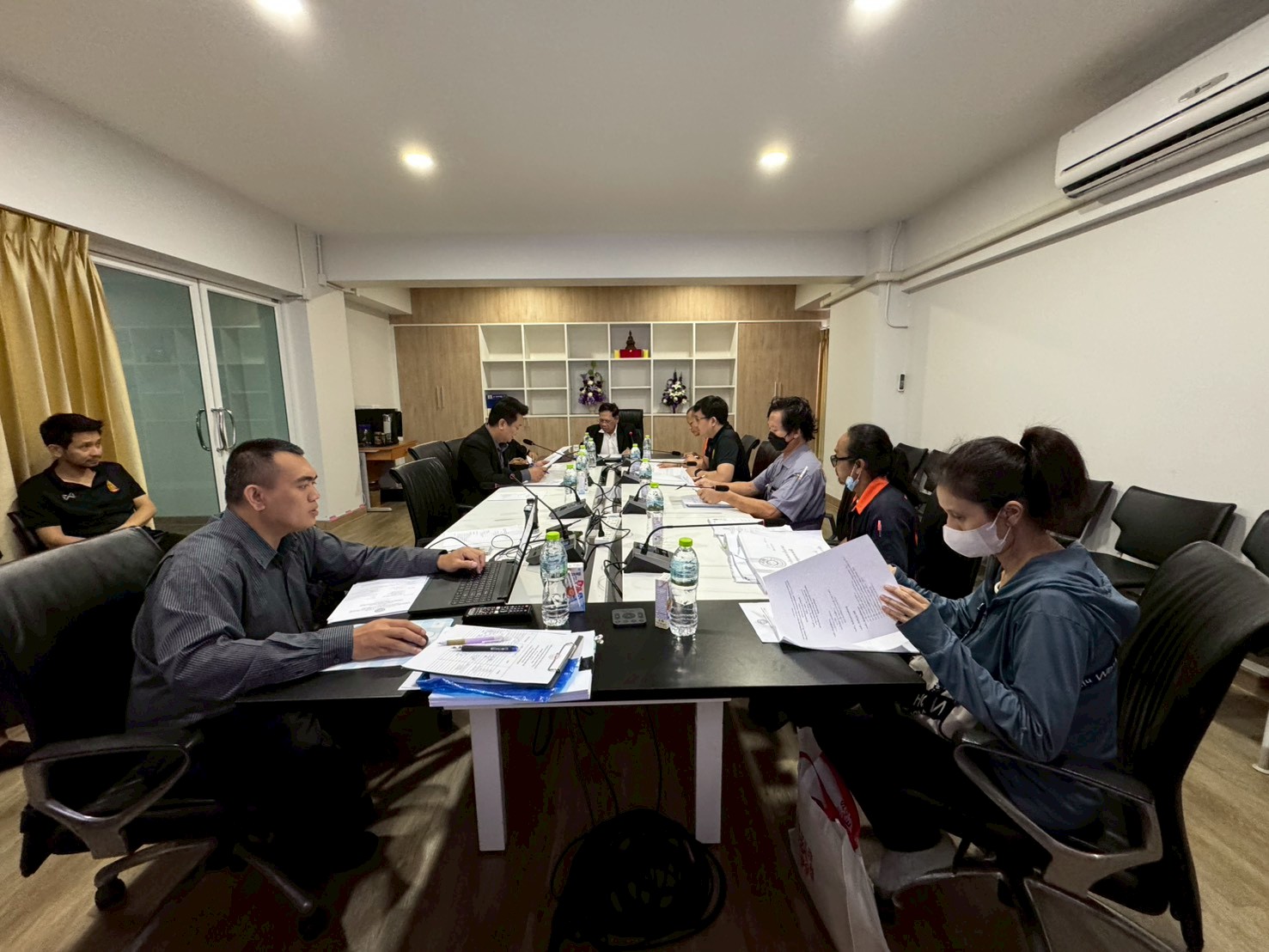 The meeting was held at the Procurement Division Meeting Room, Finance and Asset Office, Mahachulalongkornrajavidyalaya University, Lam Sai Subdistrict, Wang Noi District, Phra Nakhon Si Ayutthaya Province.
