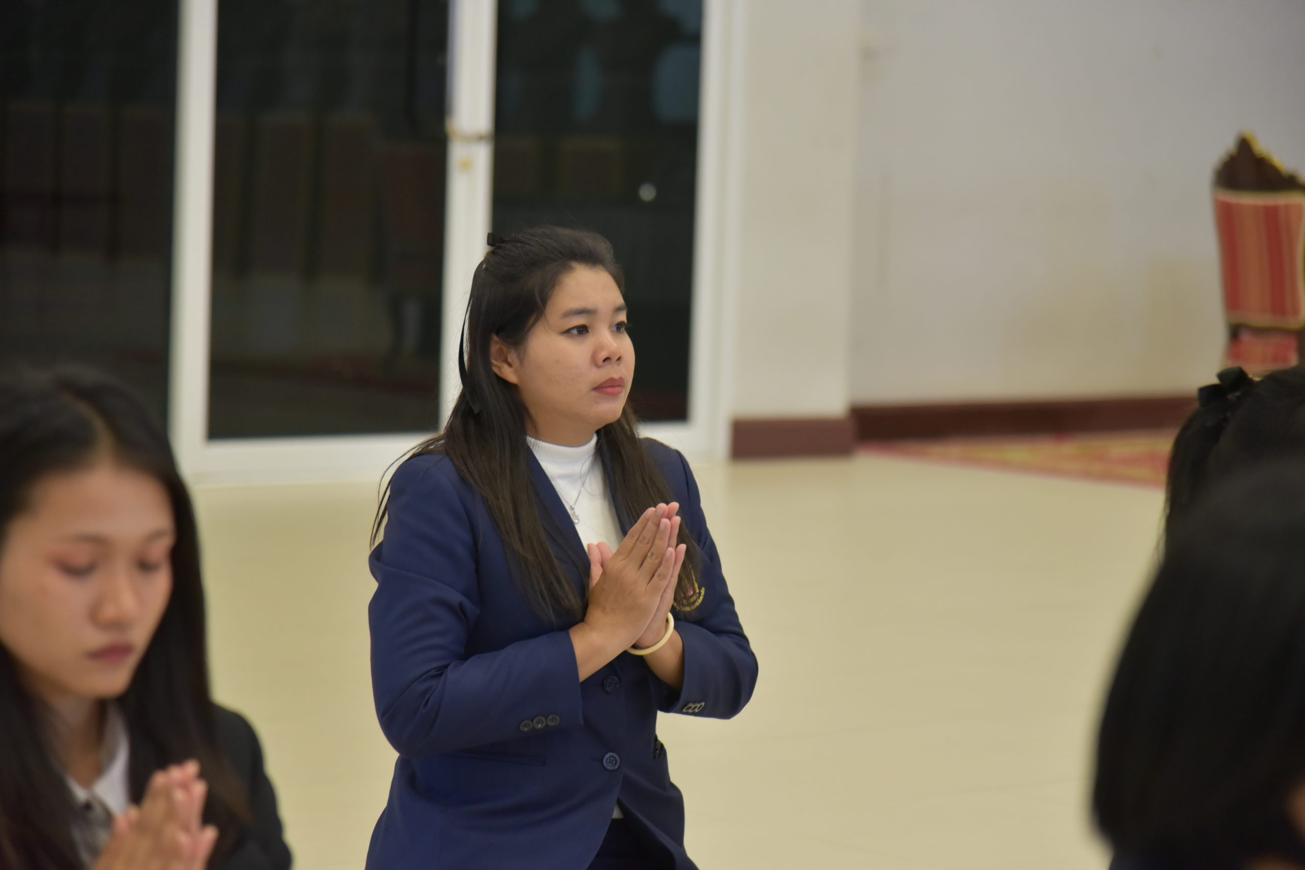Phramaha Pharadorn Bhūrissaro, Dr., Acting Director of the Language Institute, led the Language Institute’s executives, staff, and participants of the English Proficiency Enhancement for MCU staff joining the evening chanting after work. The ceremony was presided over by the Most Venerable Prof. Dr. Phra Brahmawatcharatheeracharn,the Rector of MCU at the Vipassana Institute, Mahachulalongkornrajavidyalaya University, Phra Nakhon Si Ayutthaya Province.