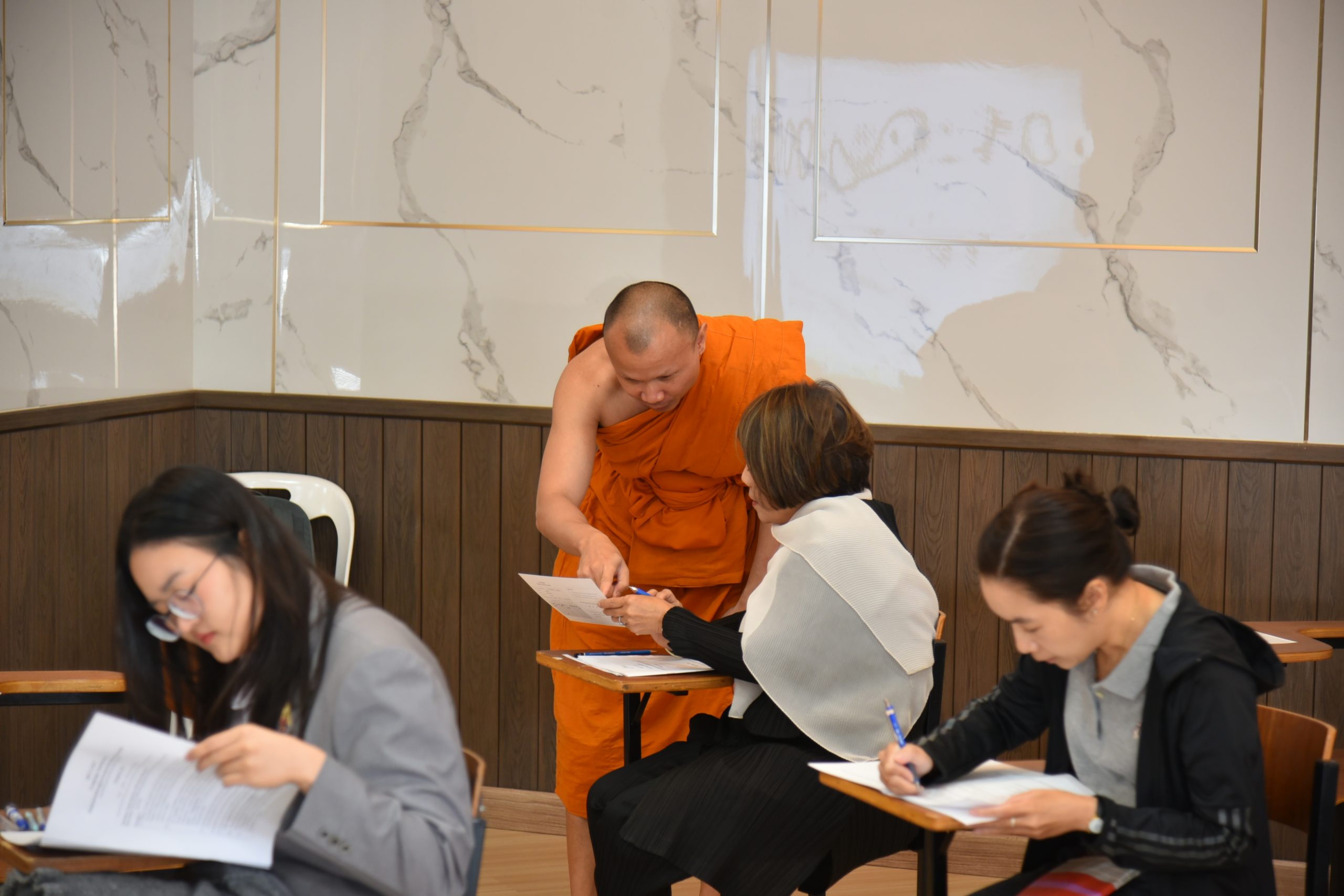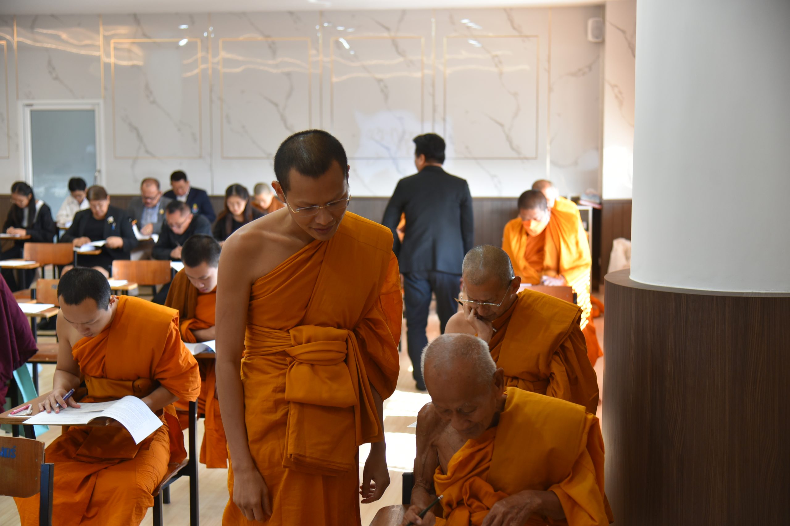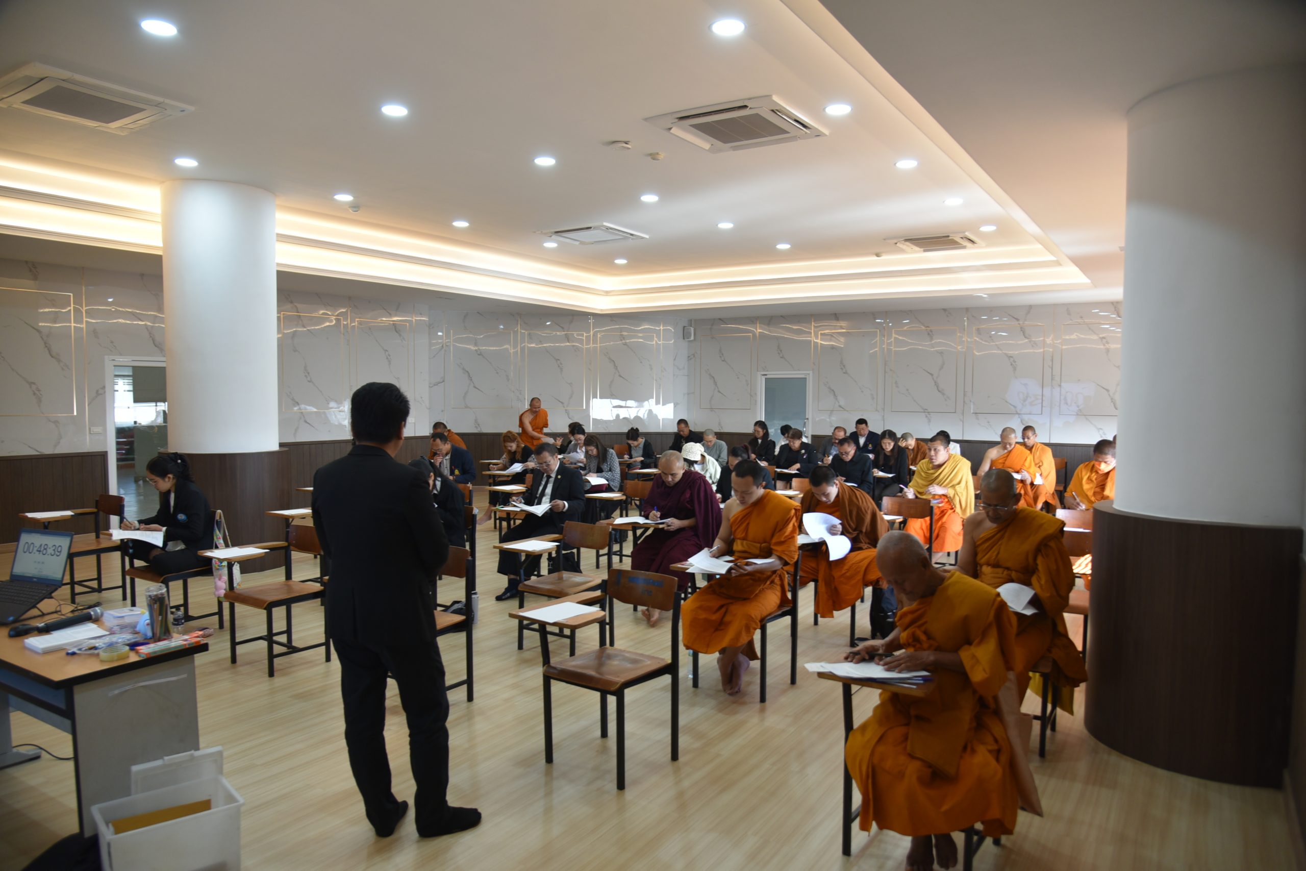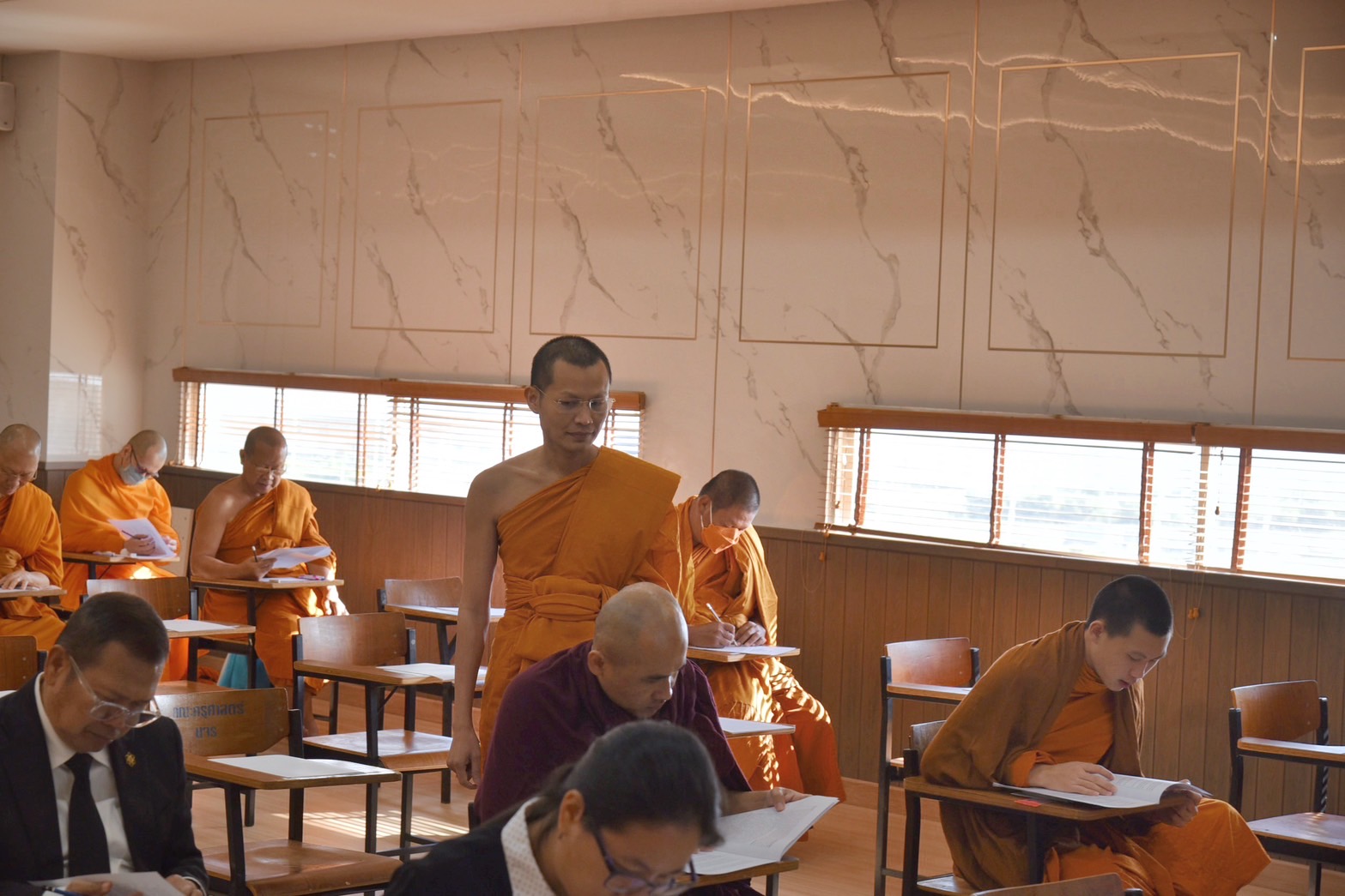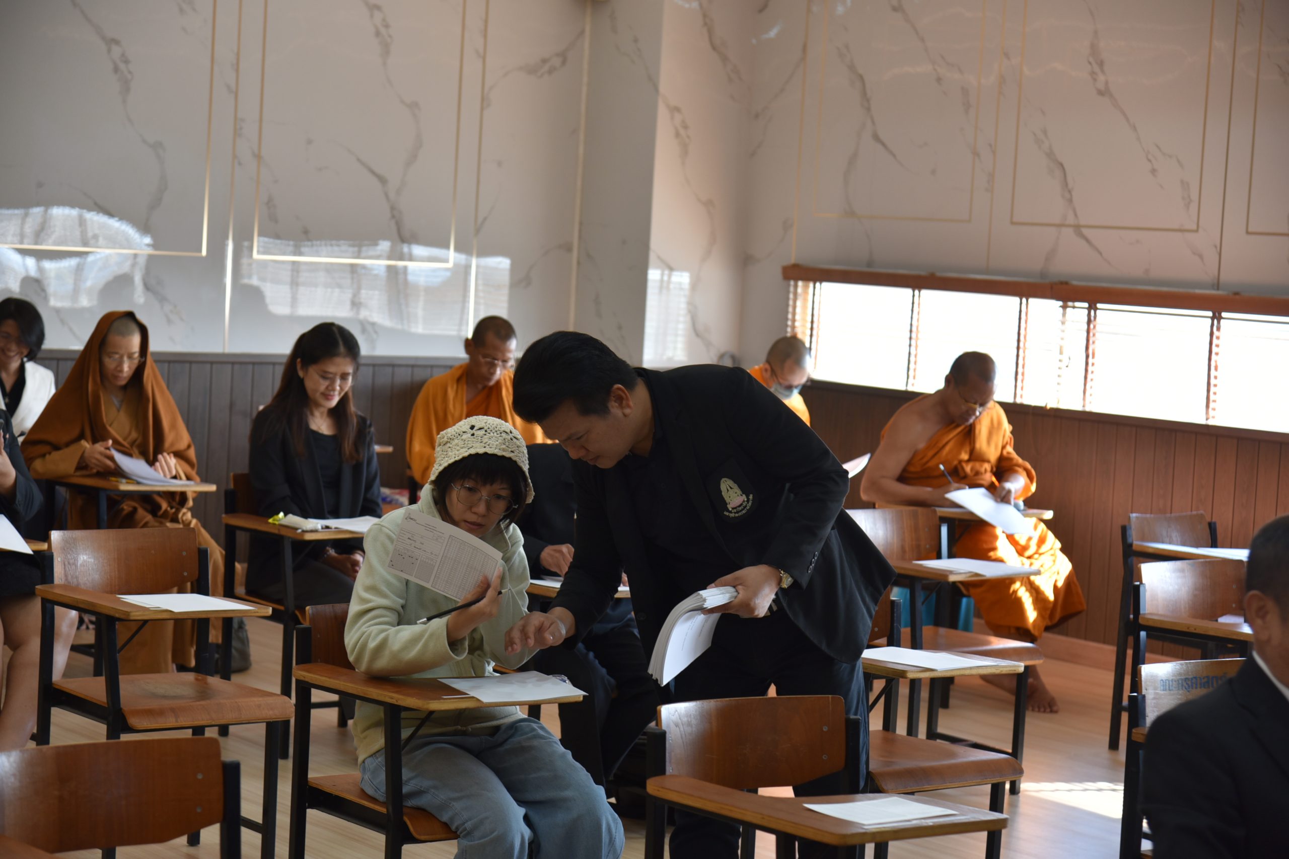 Phramaha Pharadorn Bhūrissaro, Dr., Acting Director of the Language Institute, who officially opened the examination and visited the testing rooms to encourage the examinees.