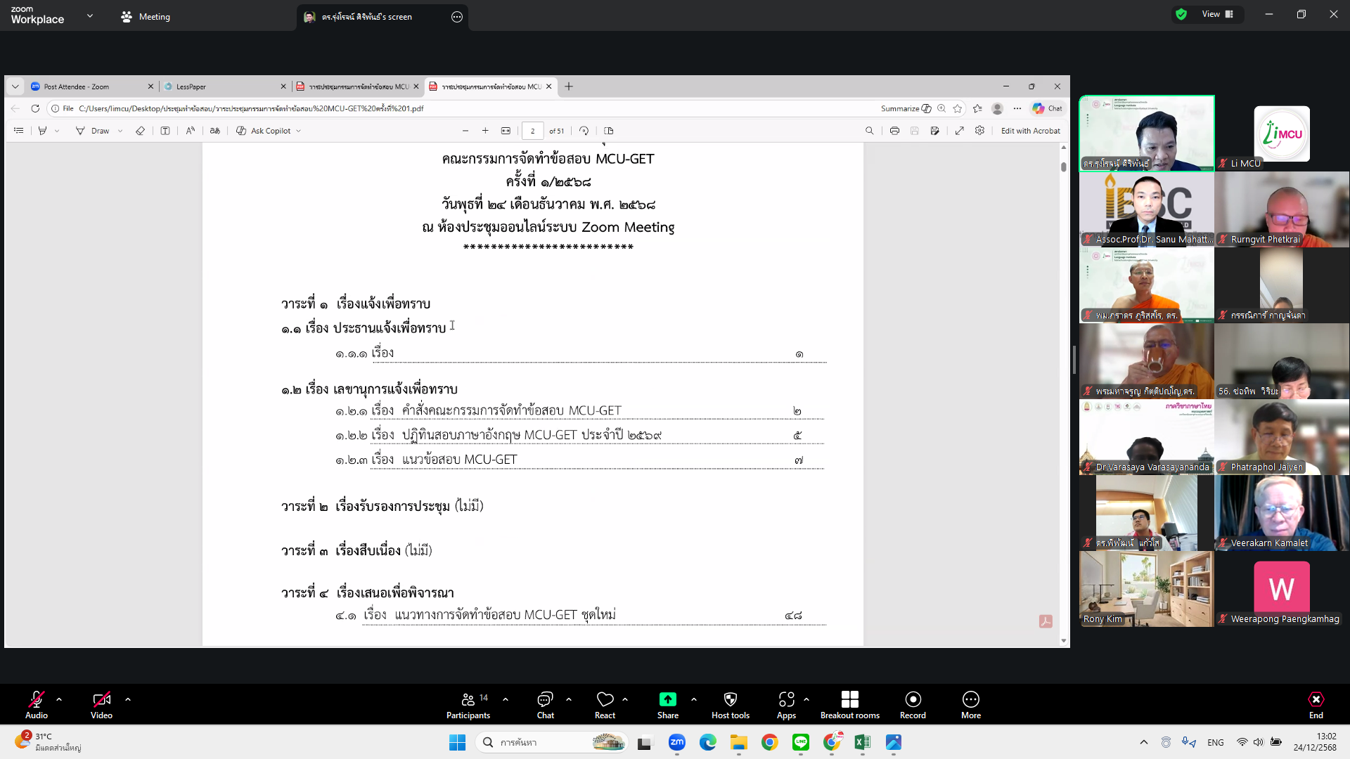 โดยคณะกรรมการชุดนี้ เป็นตัวแทนจากคณะทุกคณะของมหาวิทยาลัยมหาจุฬาลงกรณราชวิทยาลัย และกรรมการภายนอก เพื่อจัดทำข้อสอบ MCU-GET ชุดใหม่ของสถาบันภาษา และจะกำหนดใช้ประจำปี ๒๕๖๙ ณ ห้องประชุมออนไลน์ระบบ Zoom