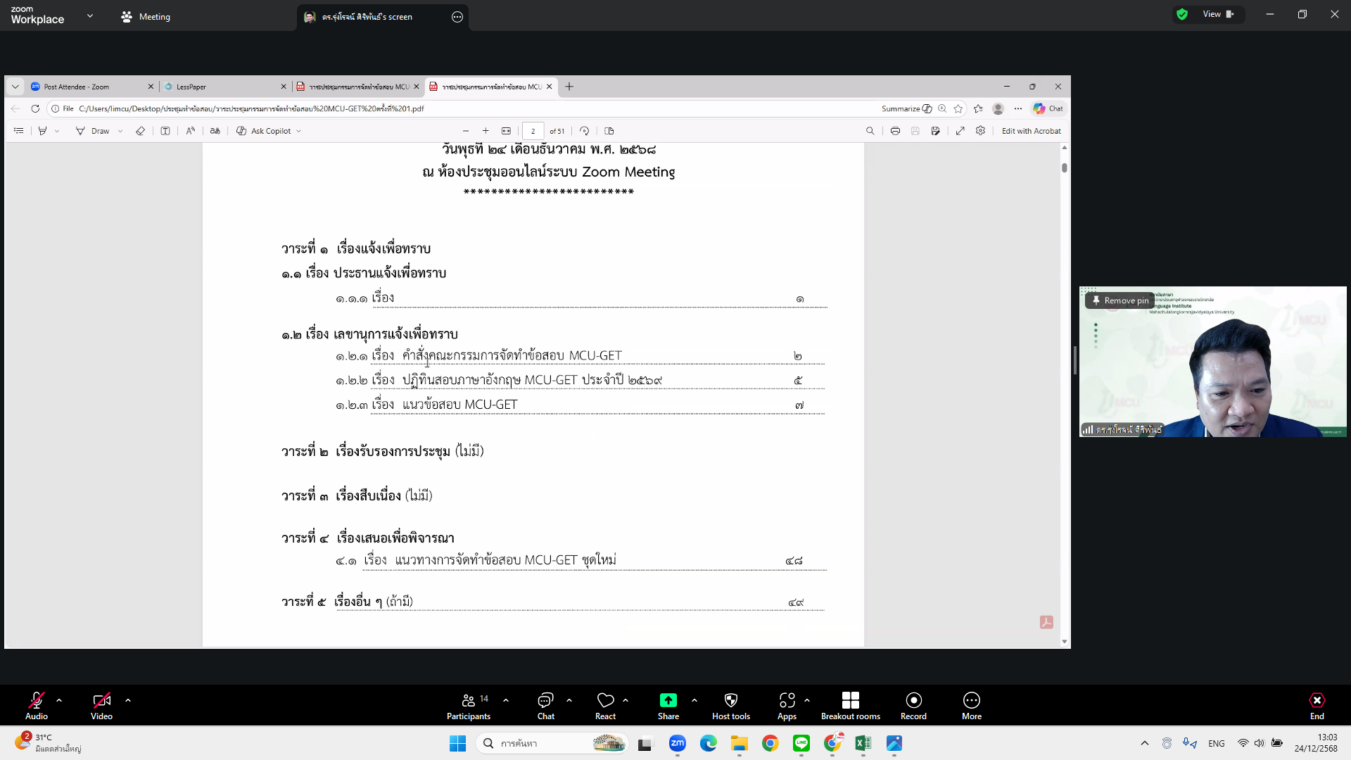 วันพุธที่ ๑๔ ธันวาคม ๒๕๖๘ เวลา ๑๓.๐๐ น.
