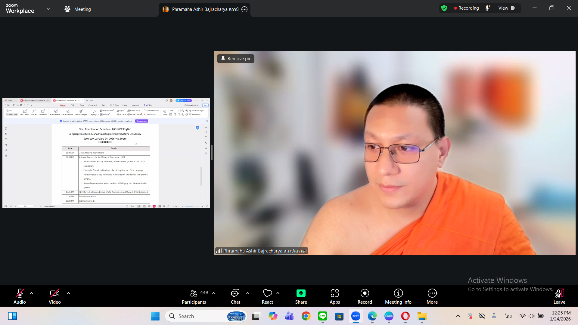 On this occasion, Phramaha Pharadorn Bhūrissaro, Dr., Acting Director of the Language Institute, presided over the ceremony, leading the participants in paying homage to the Triple Gem and delivering the opening address for the examination.