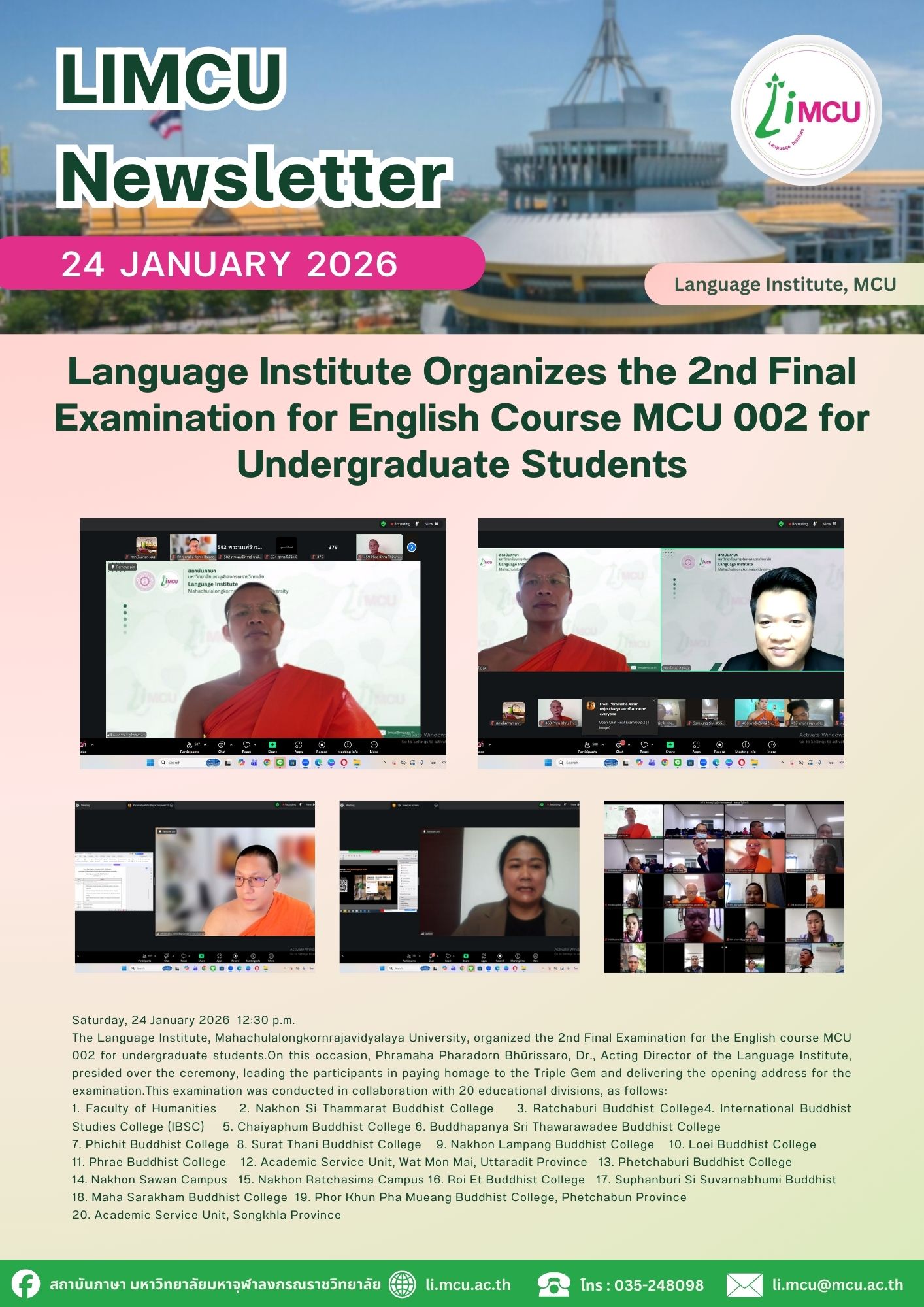 The Language Institute, Mahachulalongkornrajavidyalaya University, organized the 2nd Final Examination for the English course MCU 002 for undergraduate students.