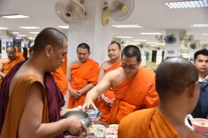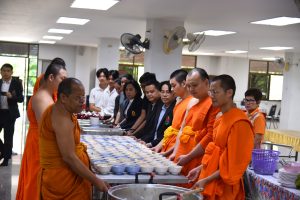 Phramaha Pharadorn Bhūrissaro, Dr., Acting Director of the Language Institute, served as the host in offering a luncheon meal to administrators, faculty members, staff, and monastic students of Mahachulalongkornrajavidyalaya University, with a total donation amount of 10,000 baht, on the auspicious occasion of his birthday anniversary.