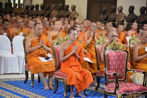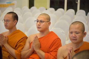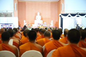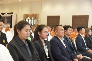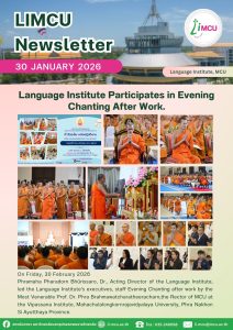 Phramaha Pharadorn Bhūrissaro, Dr., Acting Director of the Language Institute, led the Language Institute’s executives, staff Evening Chanting after work by the Most Venerable Prof. Dr. Phra Brahmawatcharatheeracharn,the Rector of MCU at the Vipassana Institute, Mahachulalongkornrajavidyalaya University, Phra Nakhon Si Ayutthaya Province.