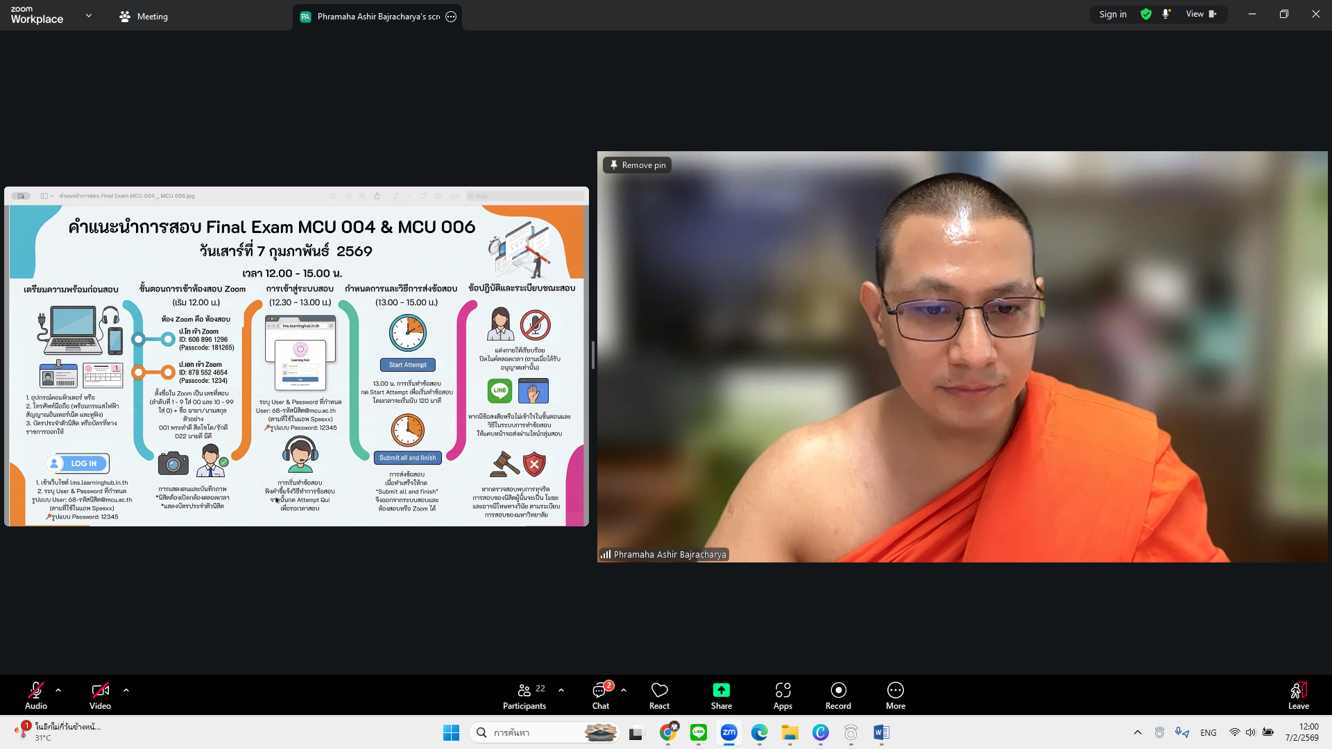 On this occasion, Phramaha Pharadorn Bhūrissaro, Dr., Acting Director of the Language Institute, assigned Phramaha Ashir Vajiranāgo a faculty member of the Language Institute, to preside over the commencement of the Doctoral examination. Furthermore, Asst. Prof. Dr. ๋Jutarat Khamphirapap, also a faculty member of the Language Institute, was assigned to preside over the Master’s examination.A total of 385 students were eligible for the exams, consisting of 98 Doctoral students and 287 Master’s students. The examinations were conducted via the Zoom online platform.