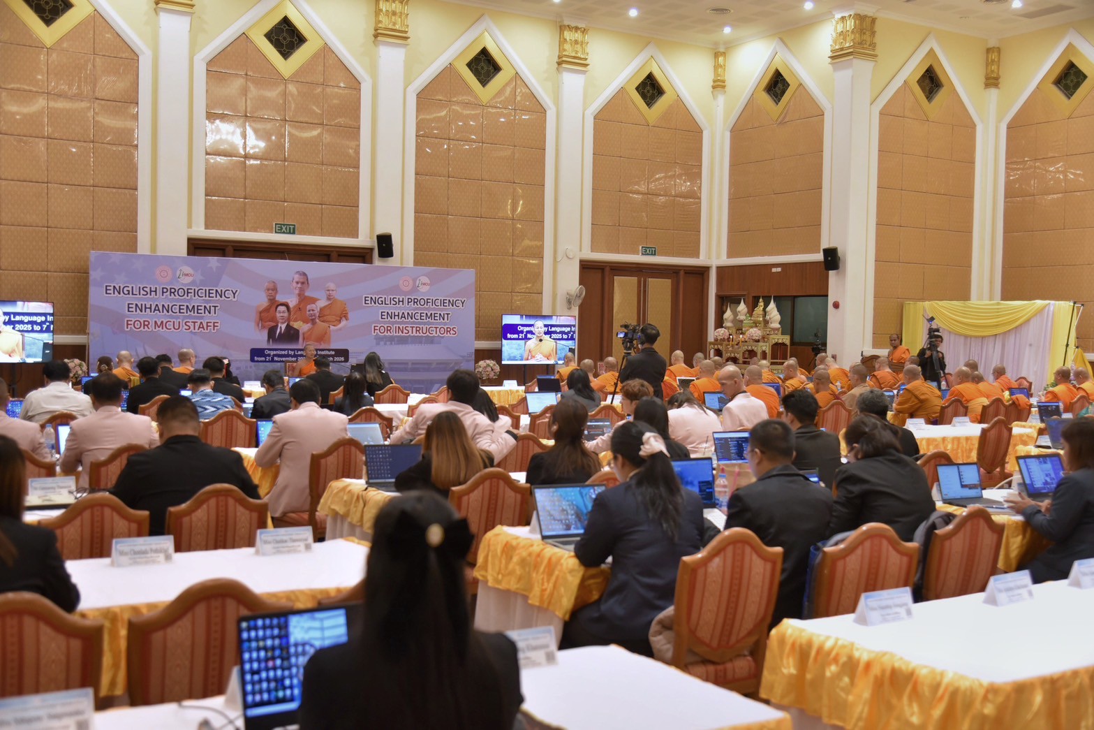 Phramaha Pharadorn Bhūrissaro, Dr., Acting Director of the Language Institute, presided over the activity by leading participants in paying homage to the Buddha and delivering a welcoming address to those attending the Second English Language Capacity Development Program for Lecturers and Support Staff. On this occasion, participants also undertook a post-learning English proficiency assessment in accordance with the prescribed criteria through the Speexx system. The activity was held at the Dhamma Hall of Wat Mahachulalongkornrajuthit, Mahachulalongkornrajavidyalaya University, Lam Sai Subdistrict, Wang Noi District, Phra Nakhon Si Ayutthaya Province.