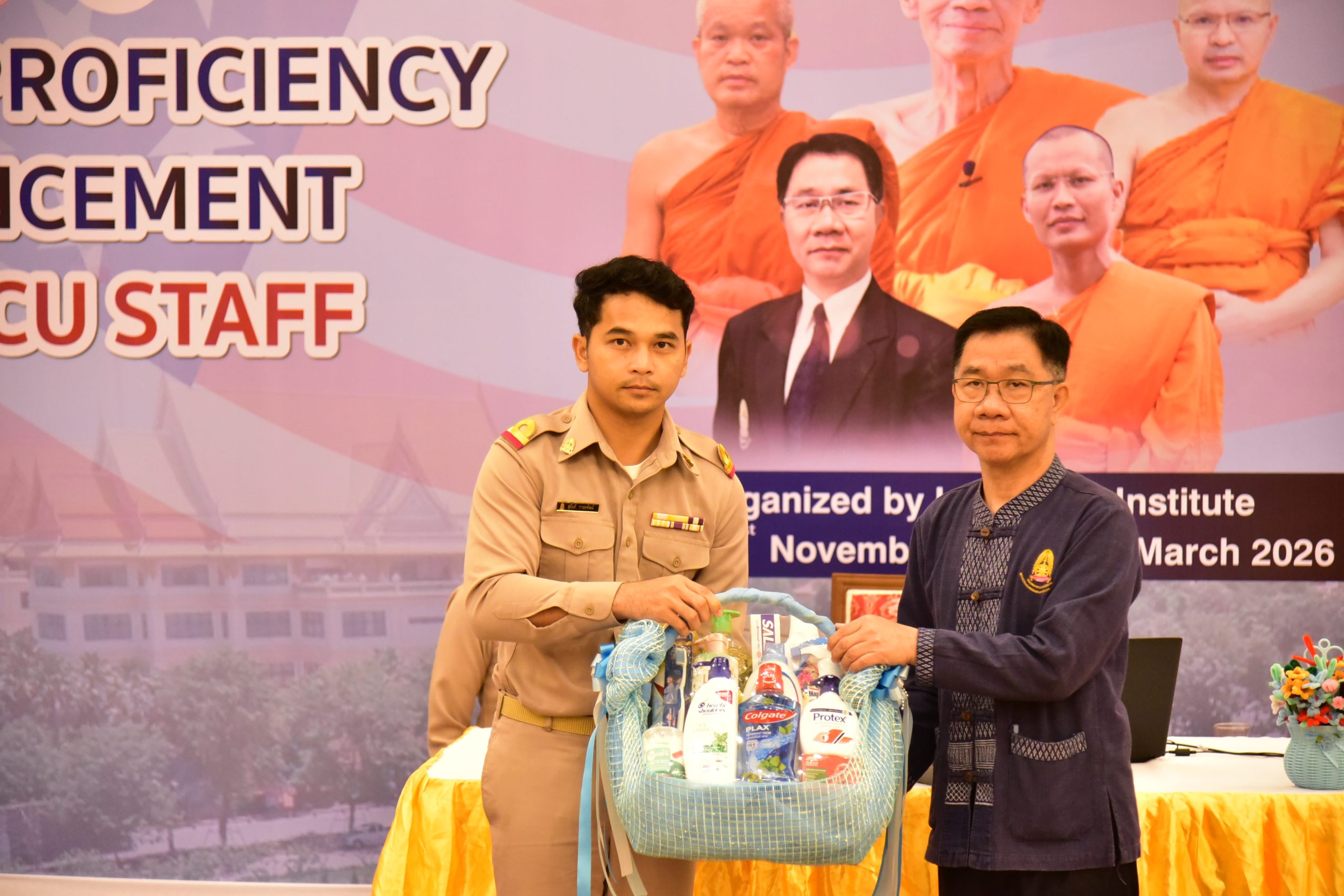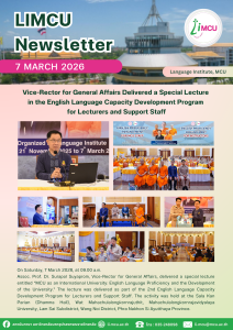 Assoc. Prof. Dr. Surapol Suyaprom, Vice-Rector for General Affairs, delivered a special lecture entitled “MCU as an International University: English Language Proficiency and the Development of the University.” The lecture was delivered as part of the 2nd English Language Capacity Development Program for Lecturers and Support Staff. The activity was held at the Sala Kan Parian (Dhamma Hall), Wat Mahachulalongkornrajuthit, Mahachulalongkornrajavidyalaya University, Lam Sai Subdistrict, Wang Noi District, Phra Nakhon Si Ayutthaya Province.