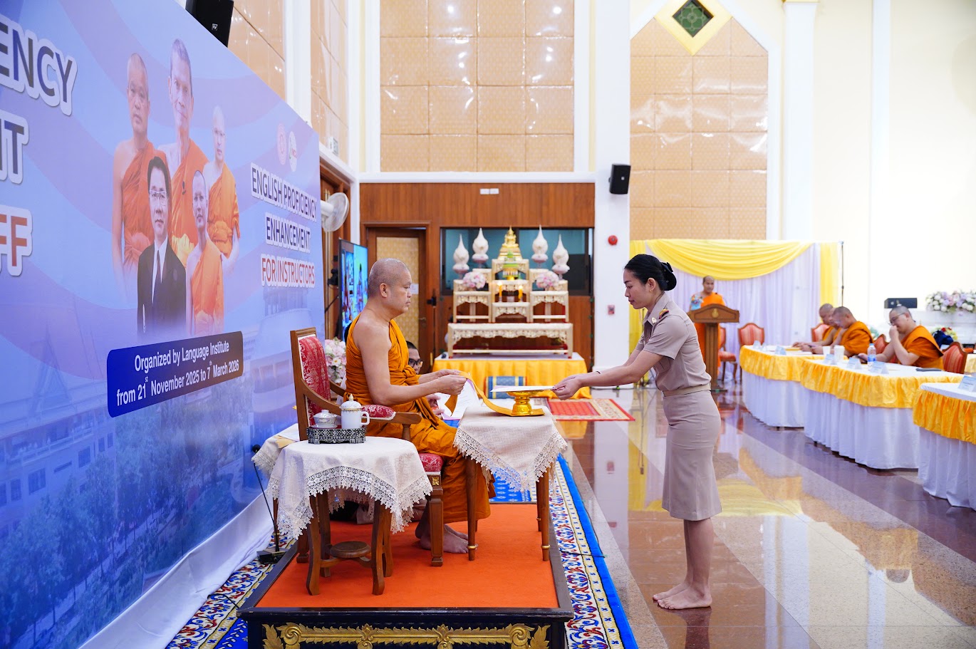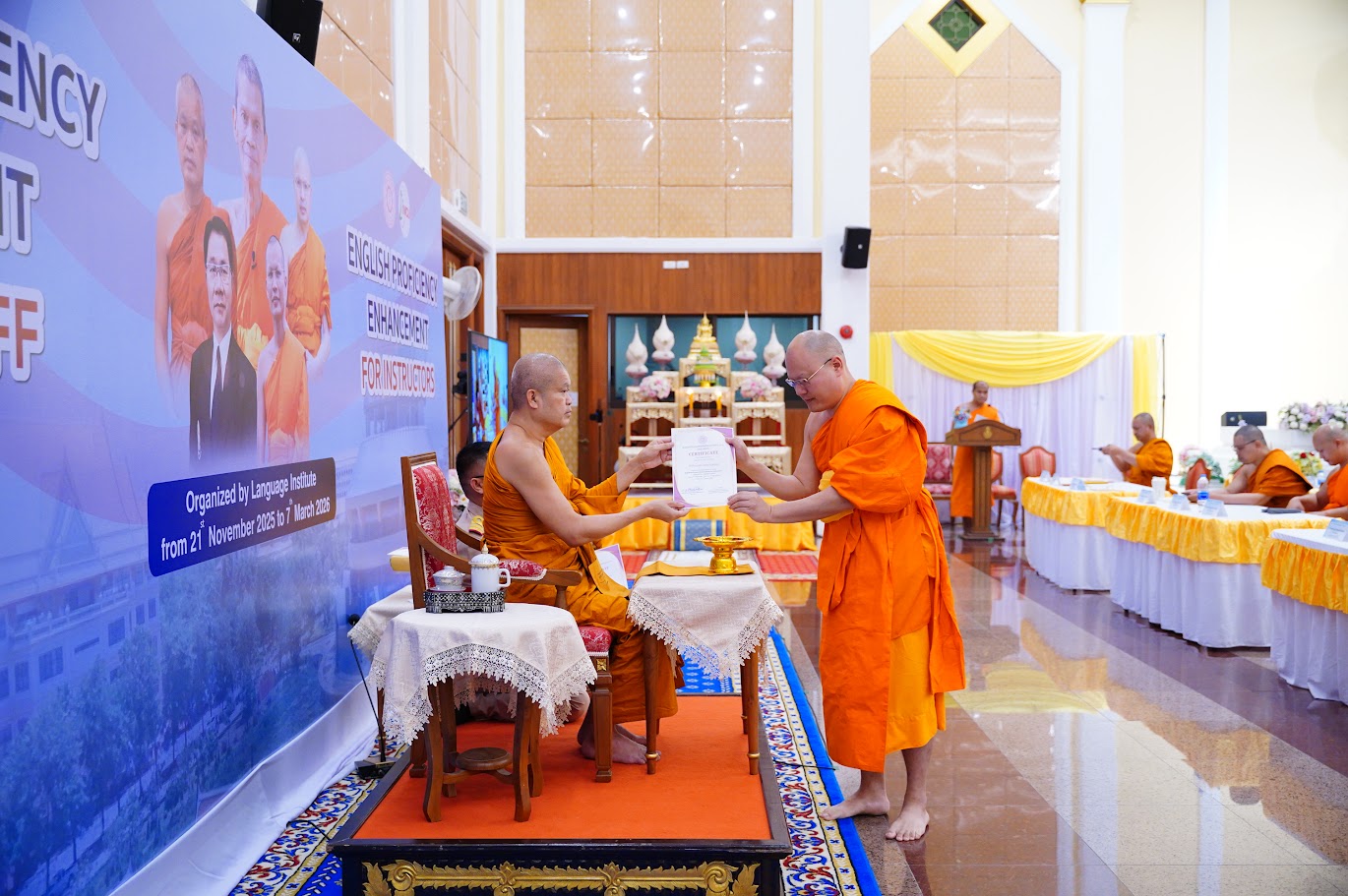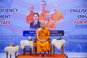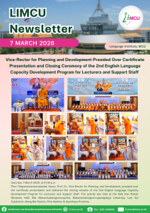 Phra Thepwatcharasarabandit, Assoc. Prof. Dr., Vice-Rector for Planning and Development, presided over the certificate presentation and delivered the closing remarks of the 2nd English Language Capacity Development Program for Lecturers and Support Staff. The activity was held at the Sala Kan Parian (Dhamma Hall), Wat Mahachulalongkornrajuthit, Mahachulalongkornrajavidyalaya University, Lam Sai Subdistrict, Wang Noi District, Phra Nakhon Si Ayutthaya Province.