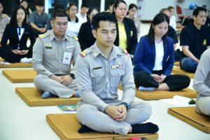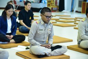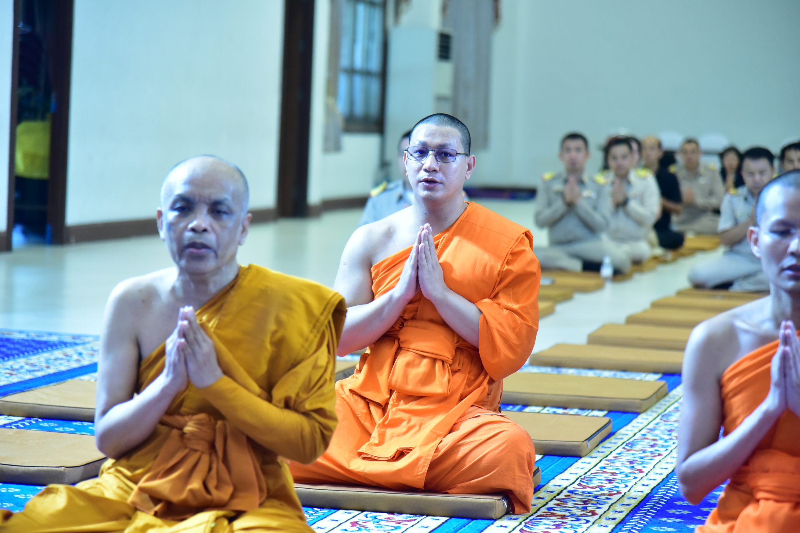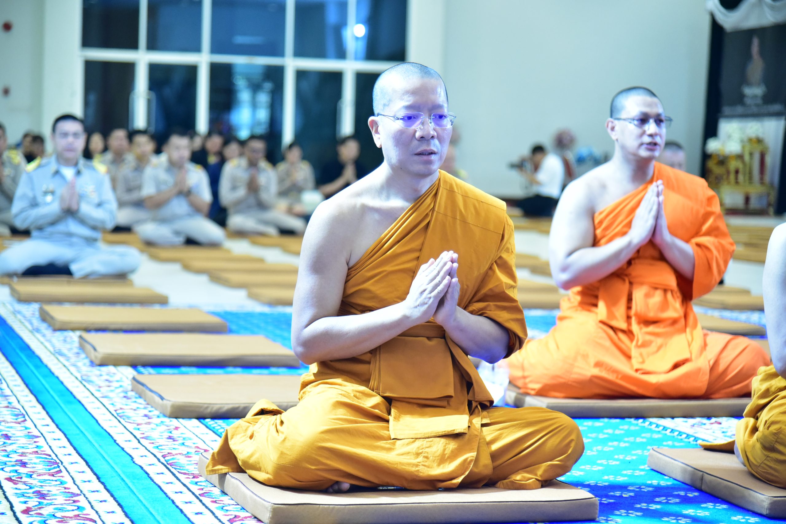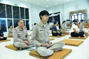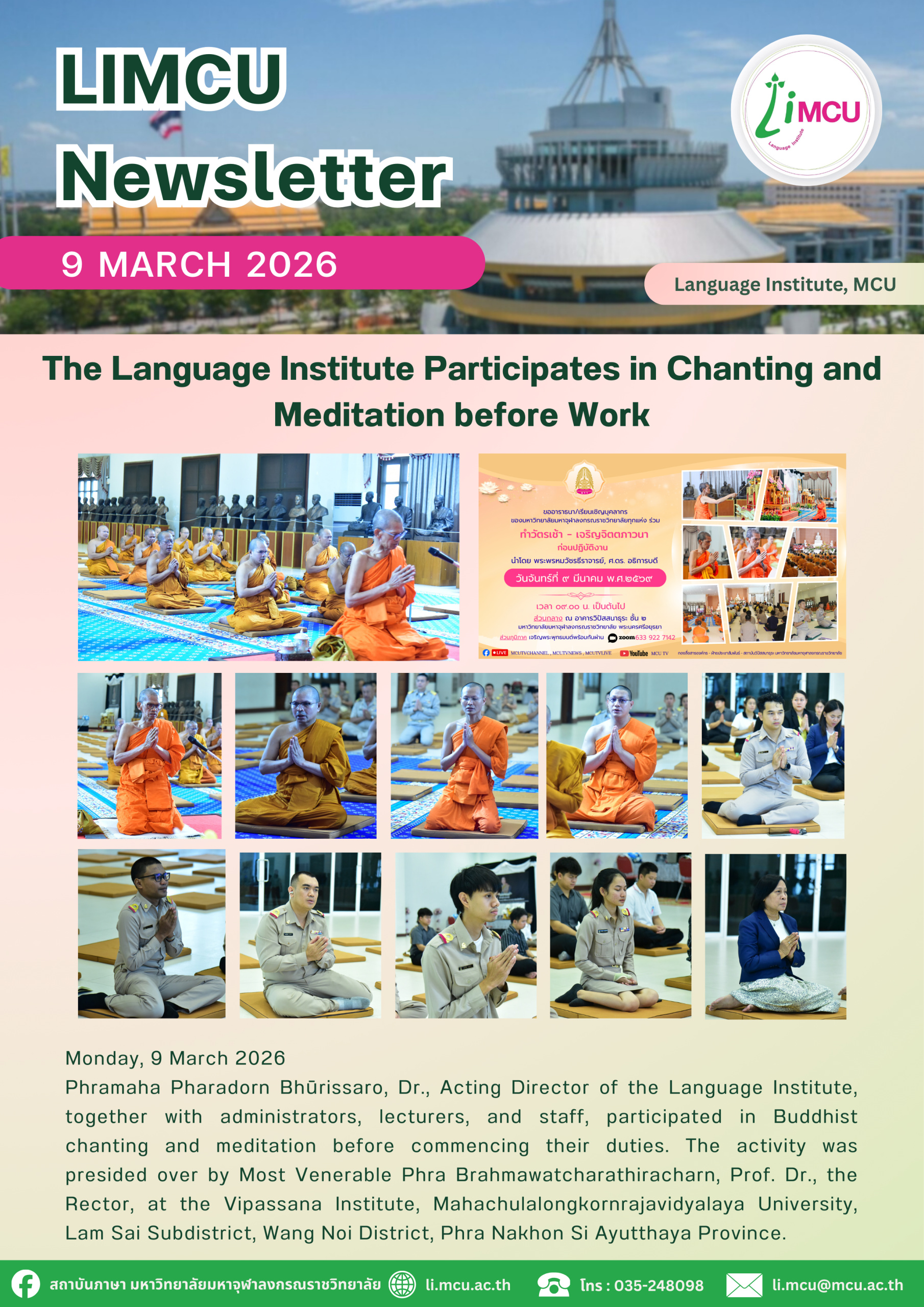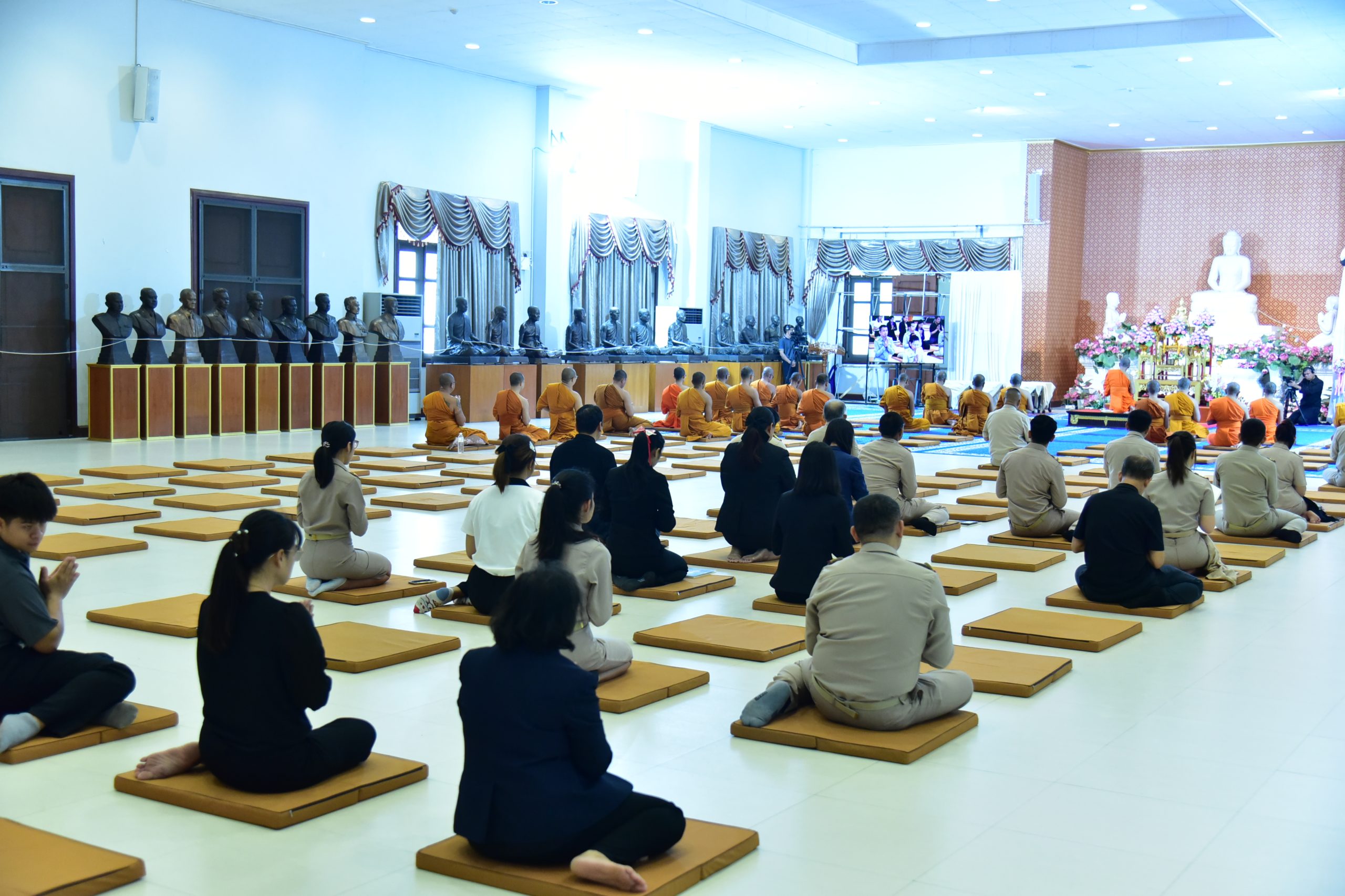 Phramaha Pharadorn Bhūrissaro, Dr., Acting Director of the Language Institute, together with administrators, lecturers, and staff, participated in Buddhist chanting and meditation before commencing their duties. The activity was presided over by Most Venerable Phra Brahmawatcharathiracharn, Prof. Dr., the Rector, at the Vipassana Institute, Mahachulalongkornrajavidyalaya University, Lam Sai Subdistrict, Wang Noi District, Phra Nakhon Si Ayutthaya Province.