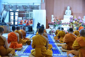 พระมหาภราดร ภูริสฺสโร, ดร. รักษาการผู้อำนวยการสถาบันภาษา พร้อมด้วย ผู้บริหาร คณาจารย์ และเจ้าหน้าที่ ร่วมเจริญพระพุทธมนต์ – เจริญจิตตภาวนา ก่อนปฏิบัติงาน โดยมี พระเดชพระคุณ พระพรหมวัชรธีราจารย์, ศ.ดร. อธิการบดี เป็นประธาน ณ สถาบันวิปัสสนา มหาวิทยาลัยมหาจุฬาลงกรณราชวิทยาลัย ต.ลำไทร อ.วังน้อย จ.พระนครศรีอยุธยา
