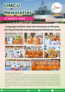 Phramaha Pharadorn Bhūrissaro, Dr., Acting Director of the Language Institute, together with administrators, lecturers, and support staff of the Language Institute, participated in the ceremony to receive the royal portrait and the cover of the royal autographed notebook.