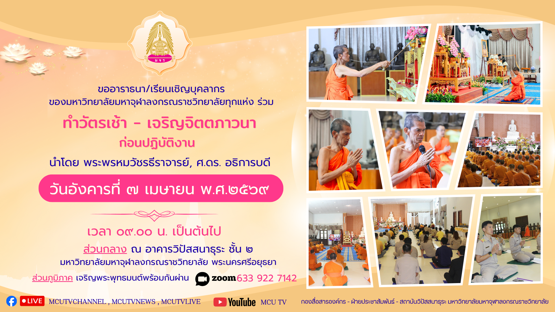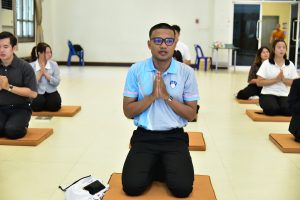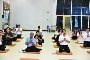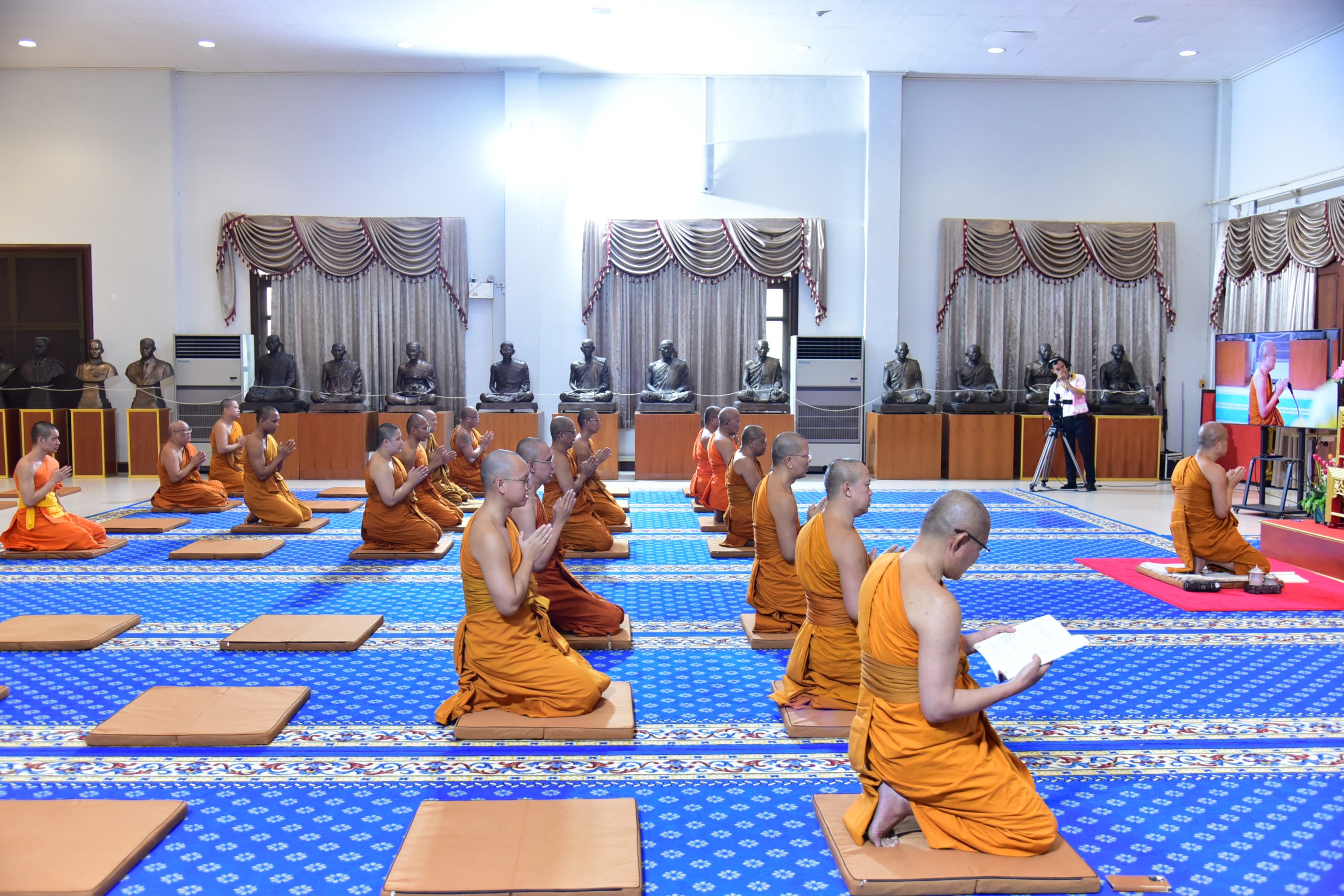 ผู้บริหาร คณาจารย์ และเจ้าหน้าที่สถาบันภาษา ร่วมเจริญพระพุทธมนต์ – เจริญจิตตภาวนา ก่อนปฏิบัติงาน โดยมี พระเดชพระคุณ พระเทพวัชรสารบัณฑิต, รศ.ดร. รองอธิการบดีฝ่ายวางแผนและพัฒนา ปฏิบัติหน้าที่แทน พระเดชพระคุณ พระพรหมวัชรธีราจารย์, ศ.ดร. อธิการบดี ณ สถาบันวิปัสสนา มหาวิทยาลัยมหาจุฬาลงกรณราชวิทยาลัย ต.ลำไทร อ.วังน้อย จ.พระนครศรีอยุธยา